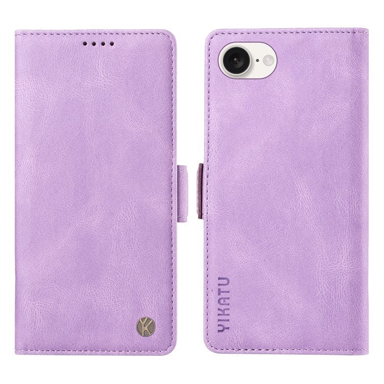 YIKATU YK-005 For iPhone 16e Case Skin-Touch Leather Stand Card Slots Phone Cover - Purple