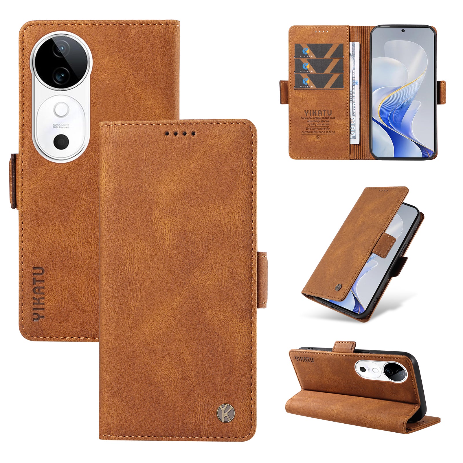 YIKATU YK-005 For vivo S19 5G / V40 5G Leather Phone Case Side Magnetic Clasps - Brown