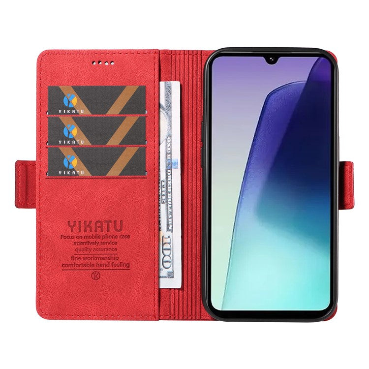 YIKATU YK-005 For Xiaomi Poco C75 4G / Redmi 14R 5G / 14C 4G Case PU Leather Wallet Phone Cover Skin Touch Feeling - Red