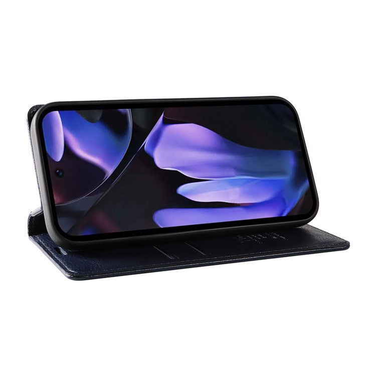 YIKATU YK-006 For Google Pixel 9a Case Magnetic Closure Leather Phone Cover Litchi Texture - Navy Blue