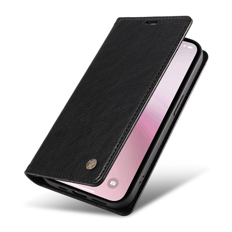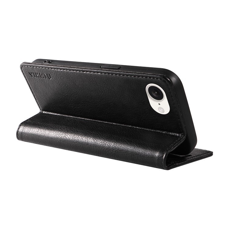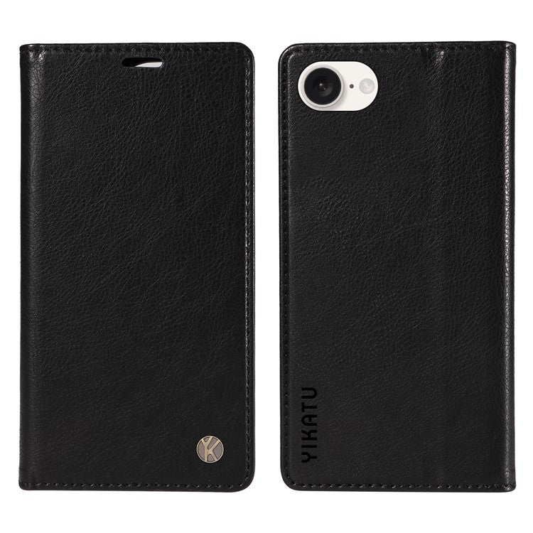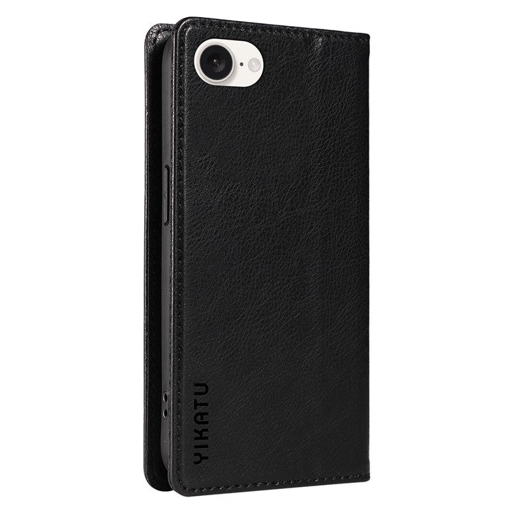 YIKATU YK-006 For iPhone 16e Case Wallet Leather Litchi Texture Magnetic Absorption Phone Cover - Black