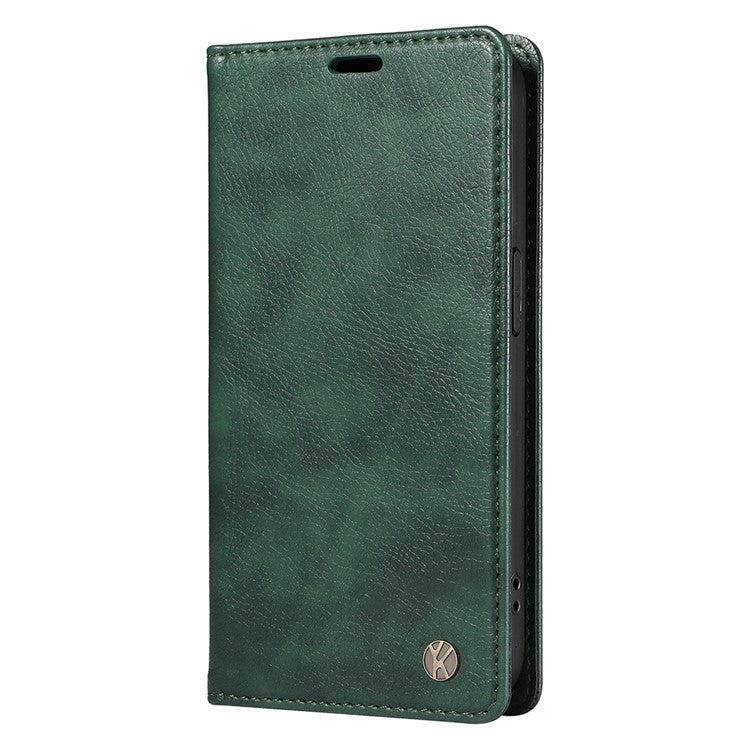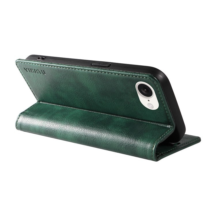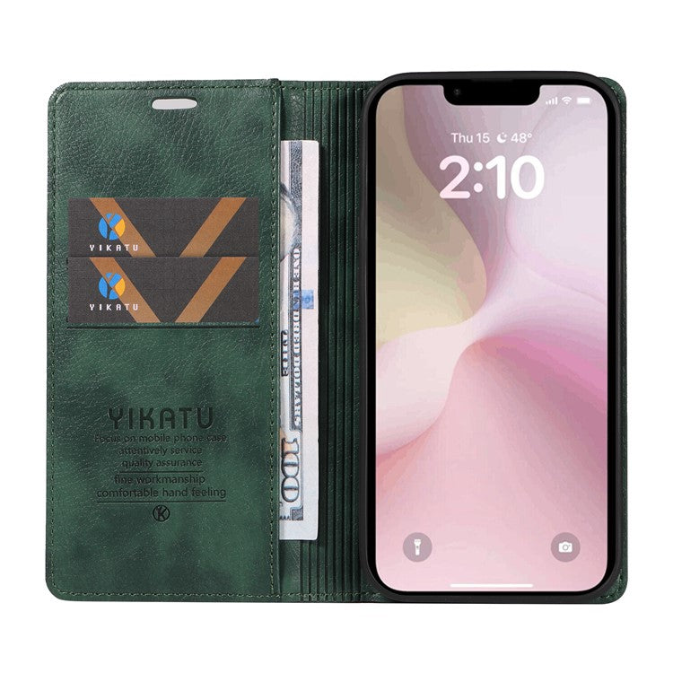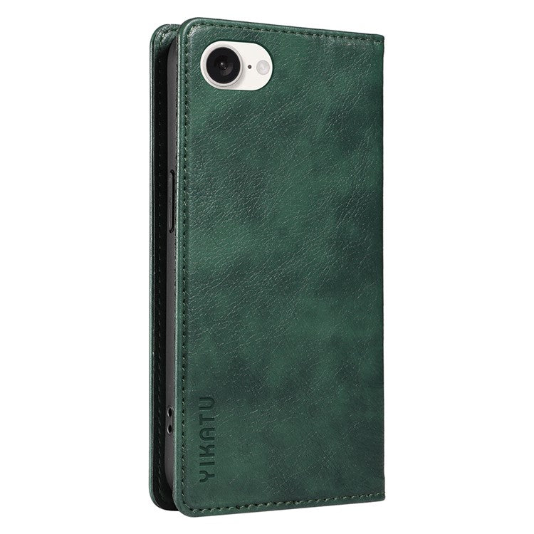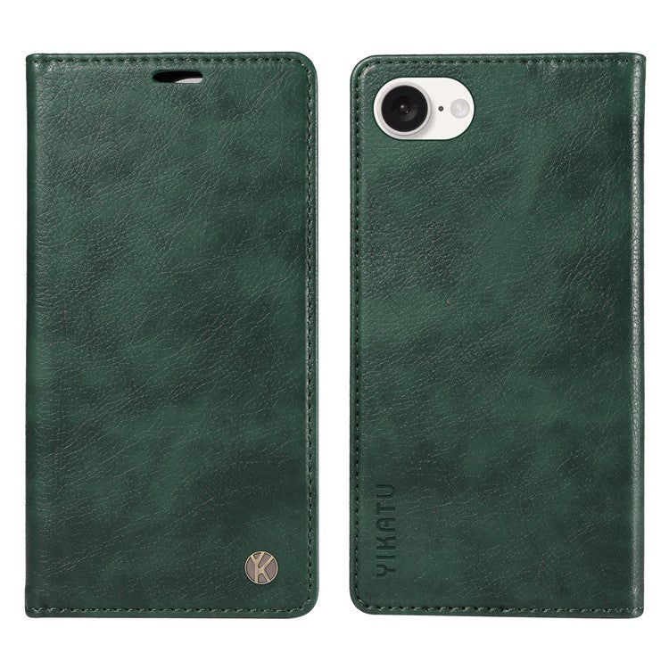 YIKATU YK-006 For iPhone 16e Case Wallet Leather Litchi Texture Magnetic Absorption Phone Cover - Green