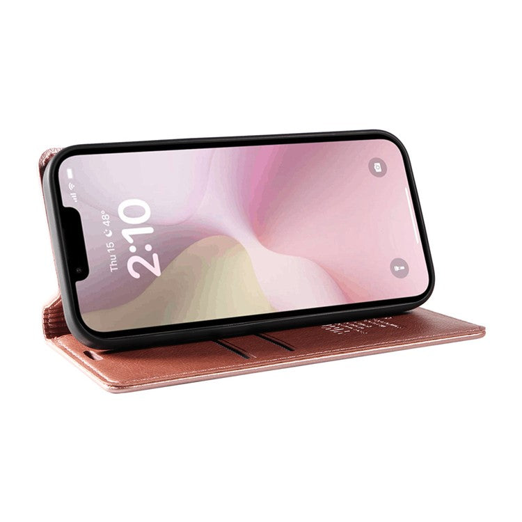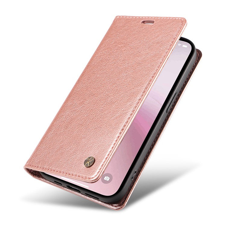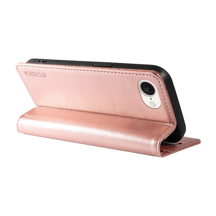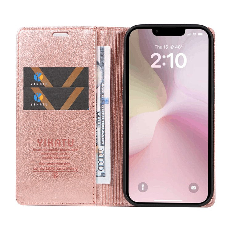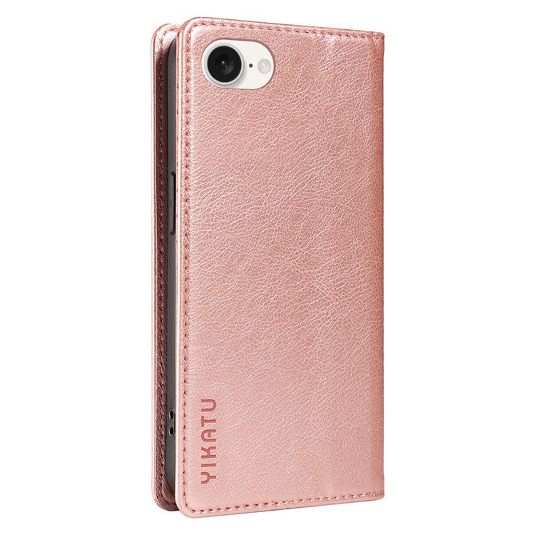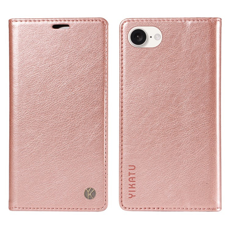 YIKATU YK-006 For iPhone 16e Case Wallet Leather Litchi Texture Magnetic Absorption Phone Cover - Rose Gold
