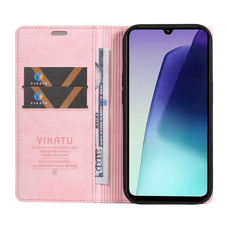 YIKATU YK-006 For Xiaomi Poco C75 4G / Redmi 14R 5G / 14C 4G Case Wallet Litchi Grain Leather Phone Cover Magnetic Auto-Absorbed - Pink