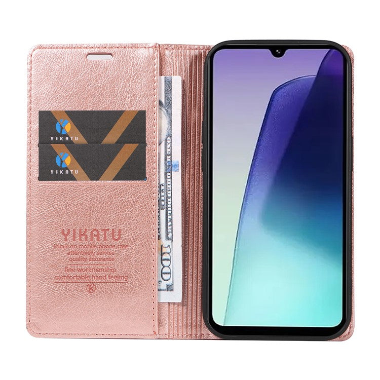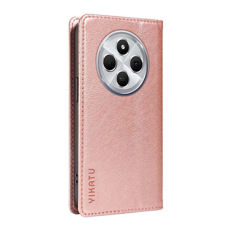 YIKATU YK-006 For Xiaomi Poco C75 4G / Redmi 14R 5G / 14C 4G Case Wallet Litchi Grain Leather Phone Cover Magnetic Auto-Absorbed - Rose Gold