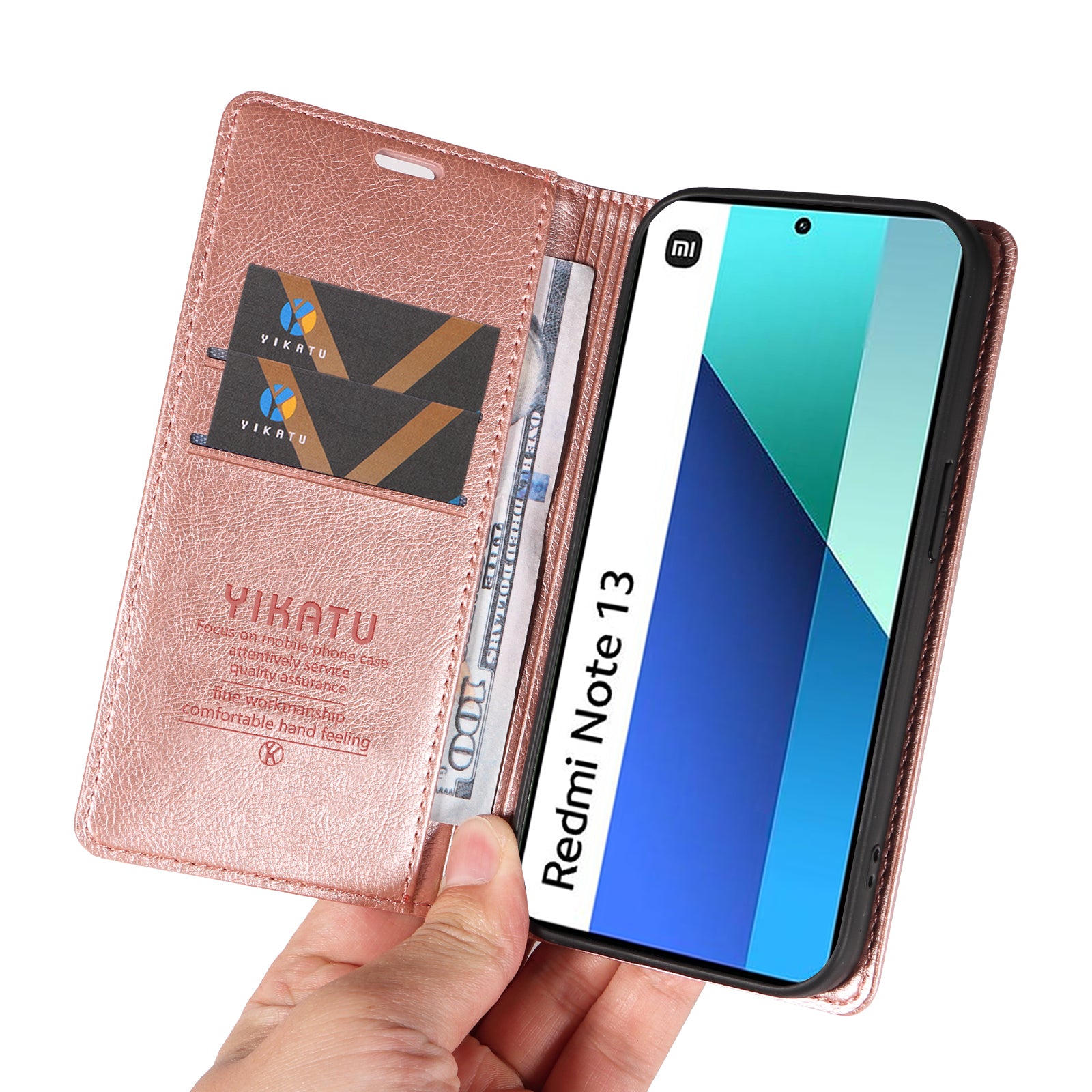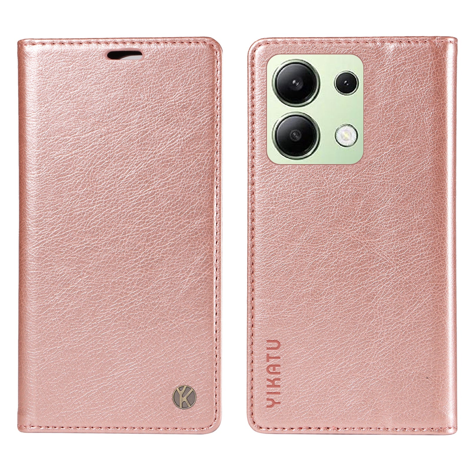 YIKATU YK-006 For Xiaomi Redmi Note 13 4G Leather Case Magnetic Closing Litchi Texture - Rose Gold