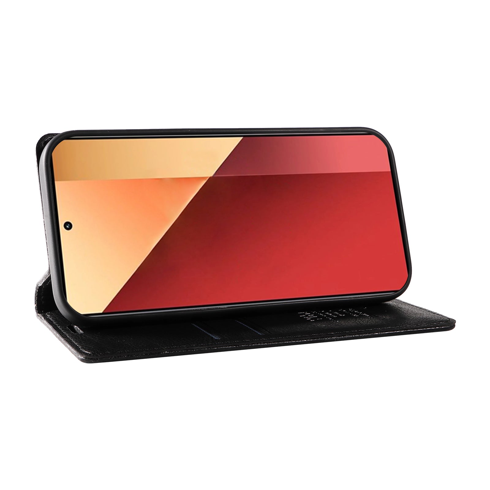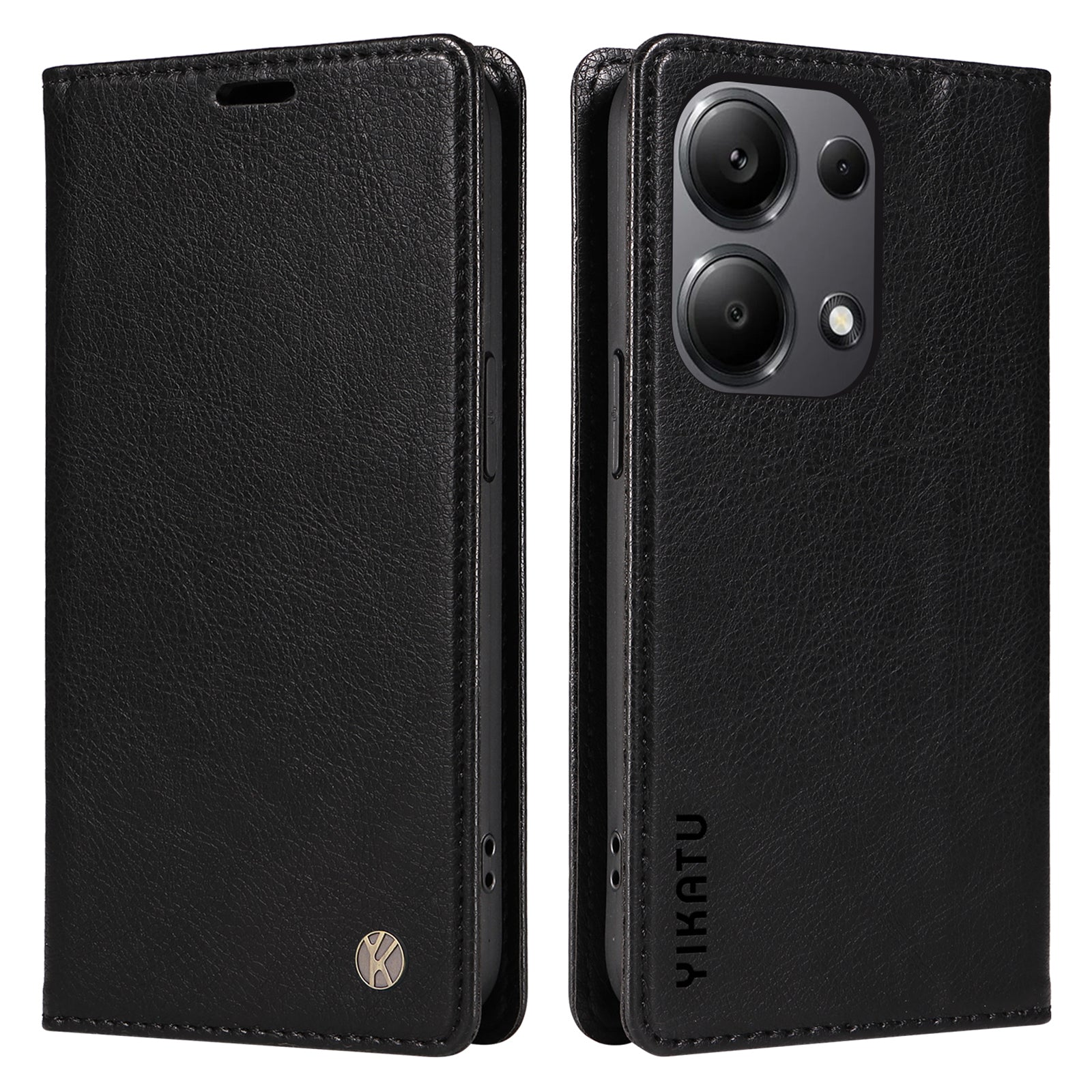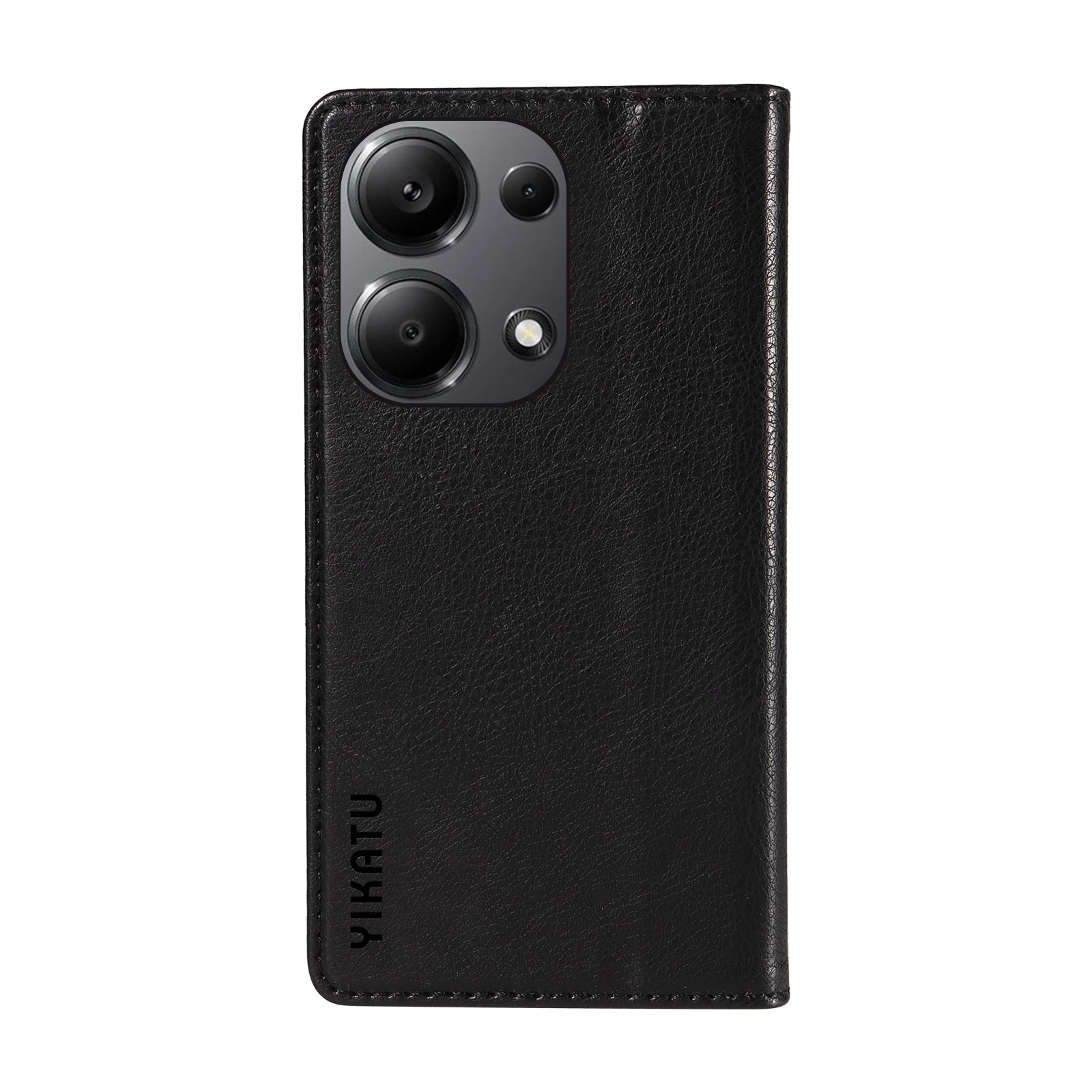 YIKATU YK-006 For Xiaomi Redmi Note 13 Pro 4G / Poco M6 Pro 4G Case Flip Wallet Phone Cover Litchi Texture - Black