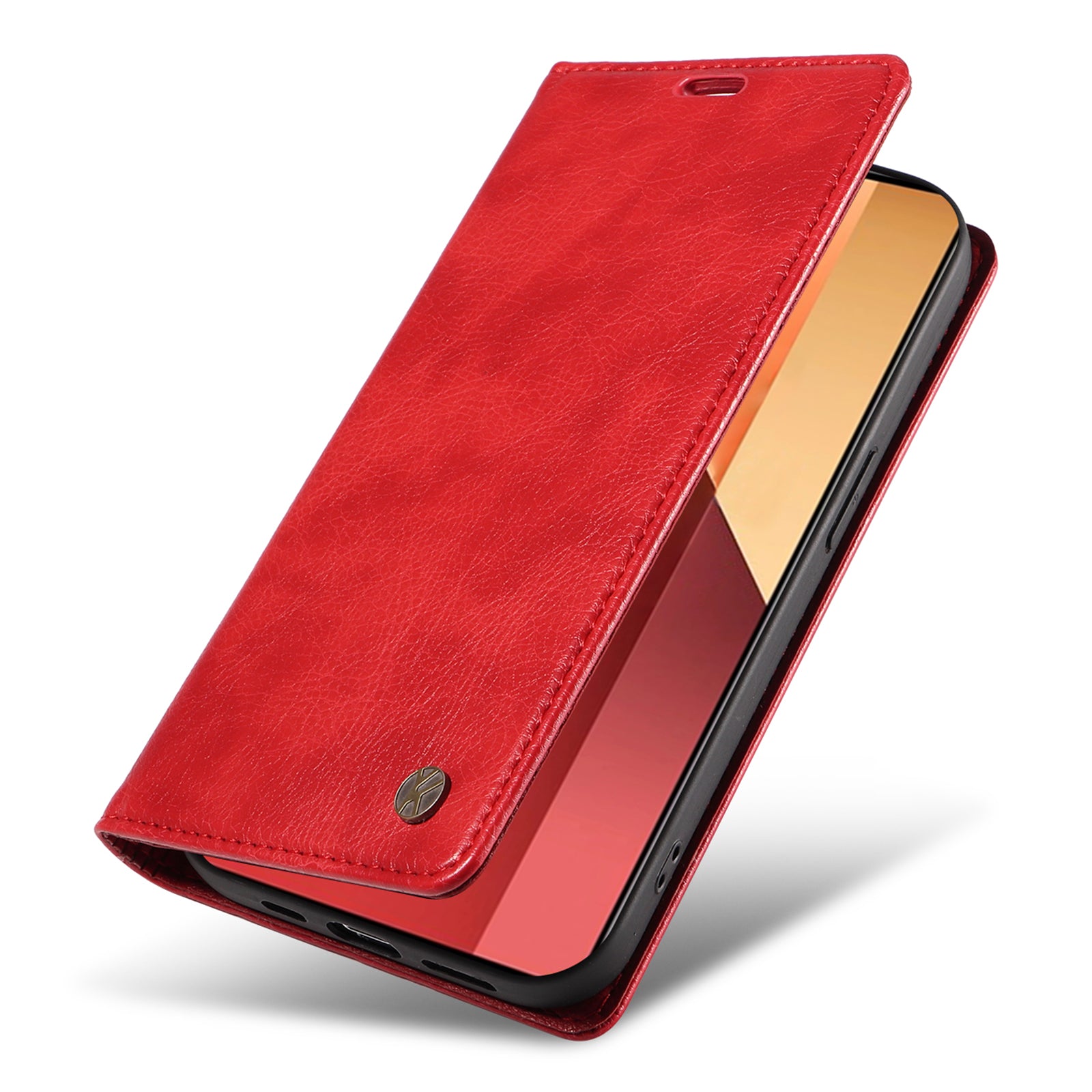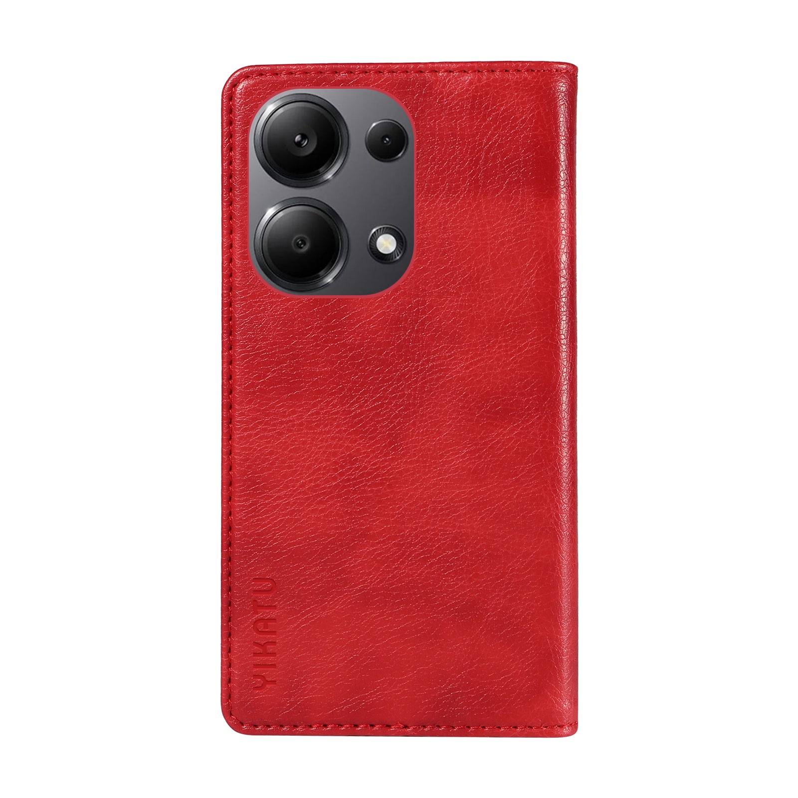 YIKATU YK-006 For Xiaomi Redmi Note 13 Pro 4G / Poco M6 Pro 4G Case Flip Wallet Phone Cover Litchi Texture - Red
