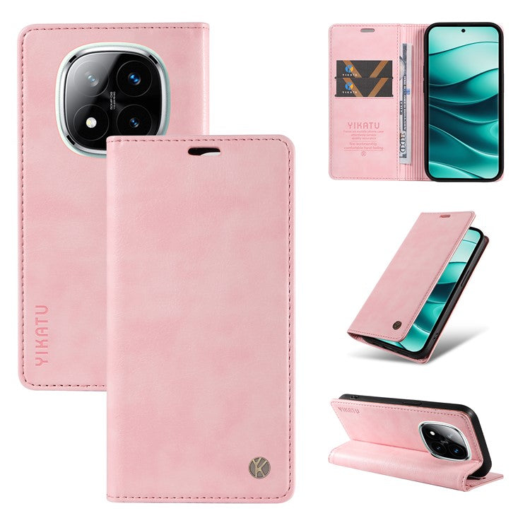 YIKATU YK-006 For Xiaomi Redmi Note 14 5G Case Magnetic Closure Leather Phone Cover Litchi Texture - Pink