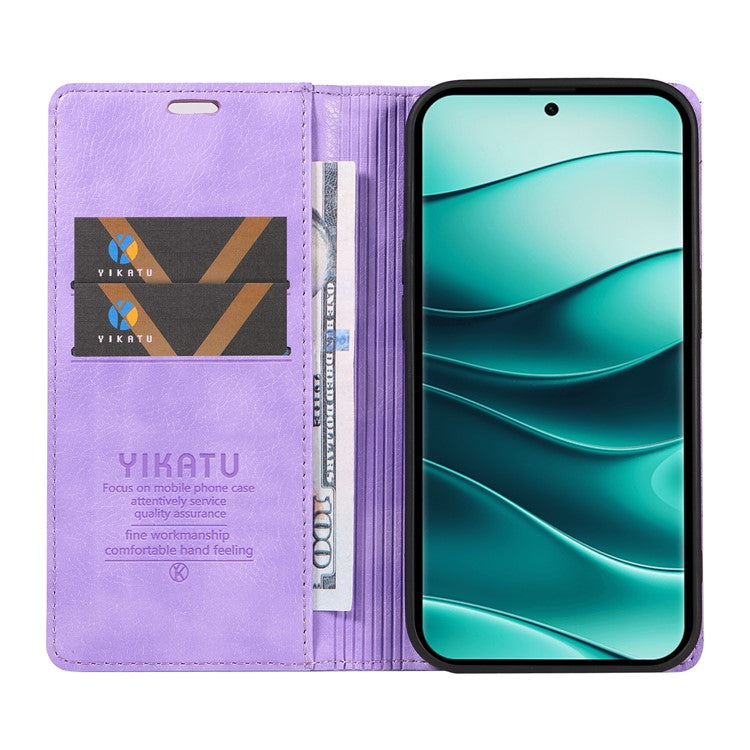 YIKATU YK-006 For Xiaomi Redmi Note 14 5G Case Magnetic Closure Leather Phone Cover Litchi Texture - Purple
