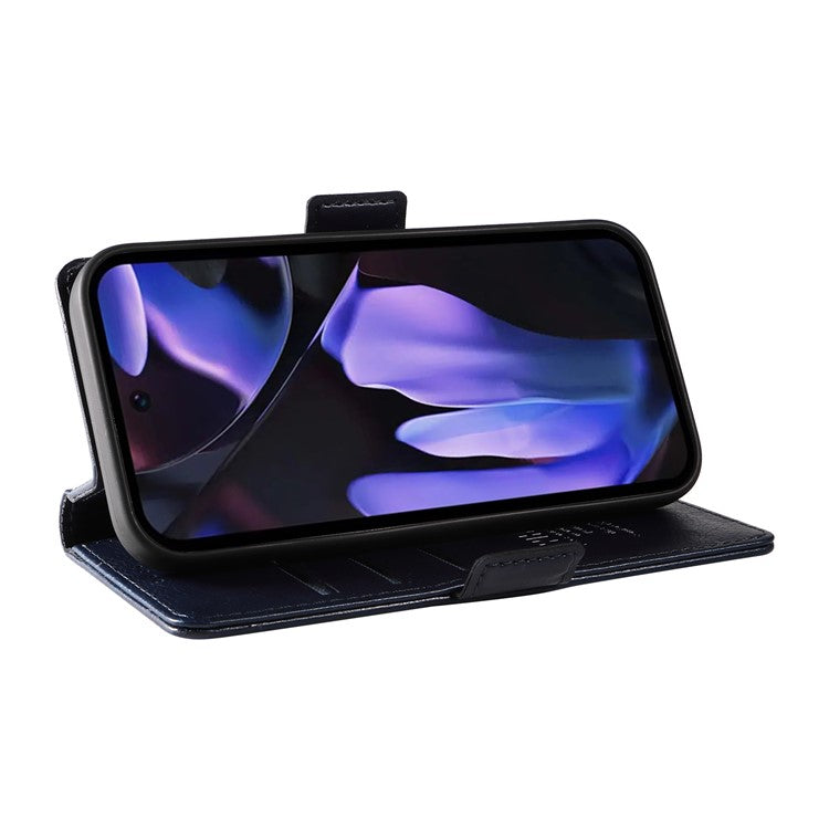 YIKATU YK-007 For Google Pixel 9a Case Side Buckle PU Leather Phone Cover Litchi Texture - Navy Blue
