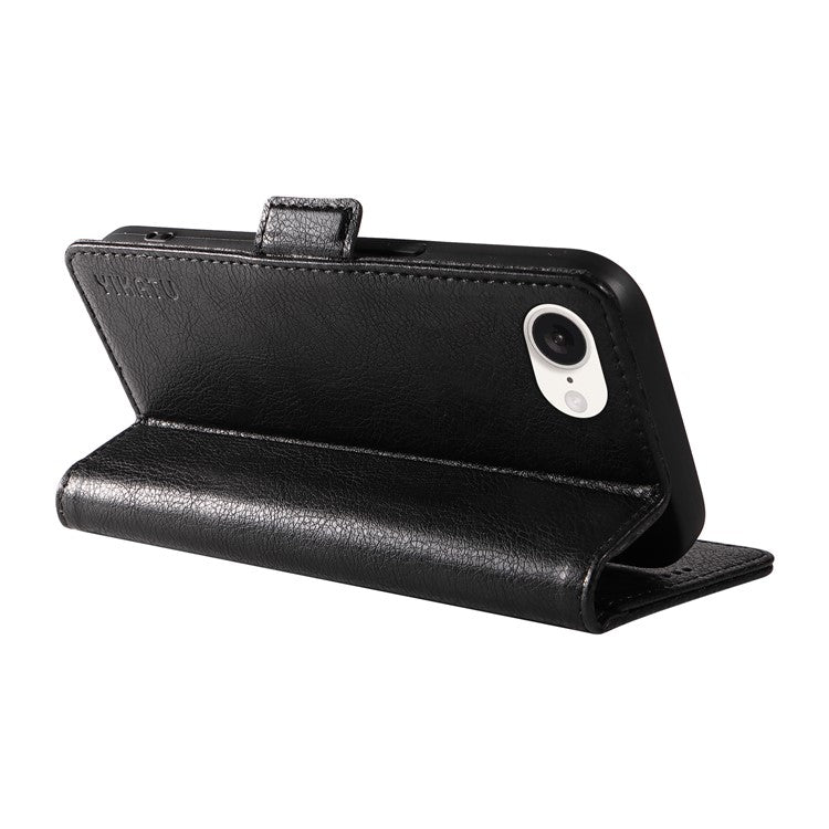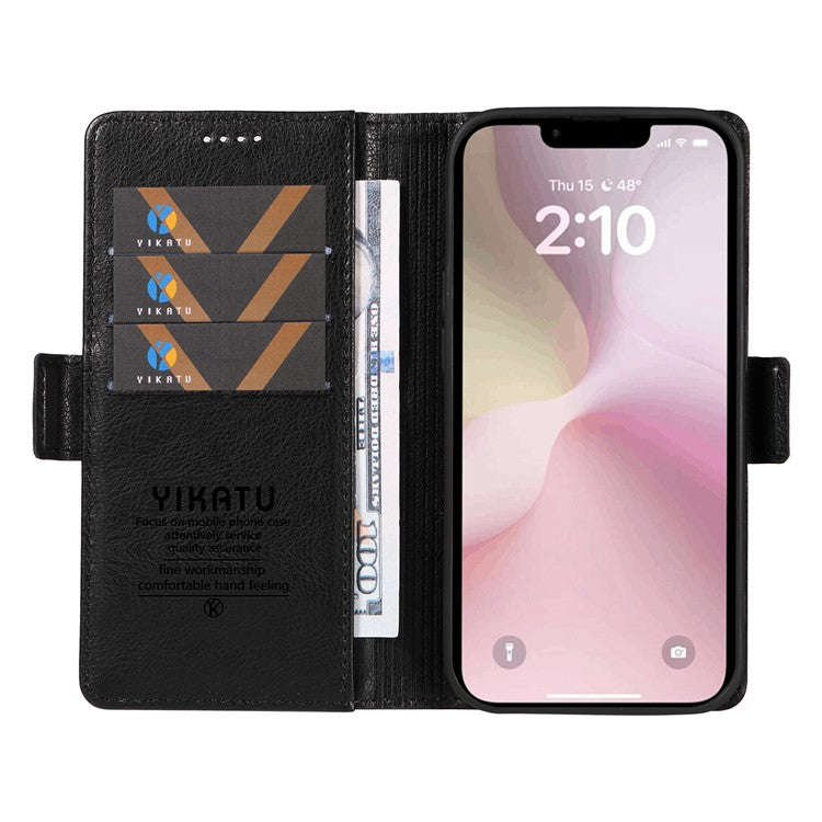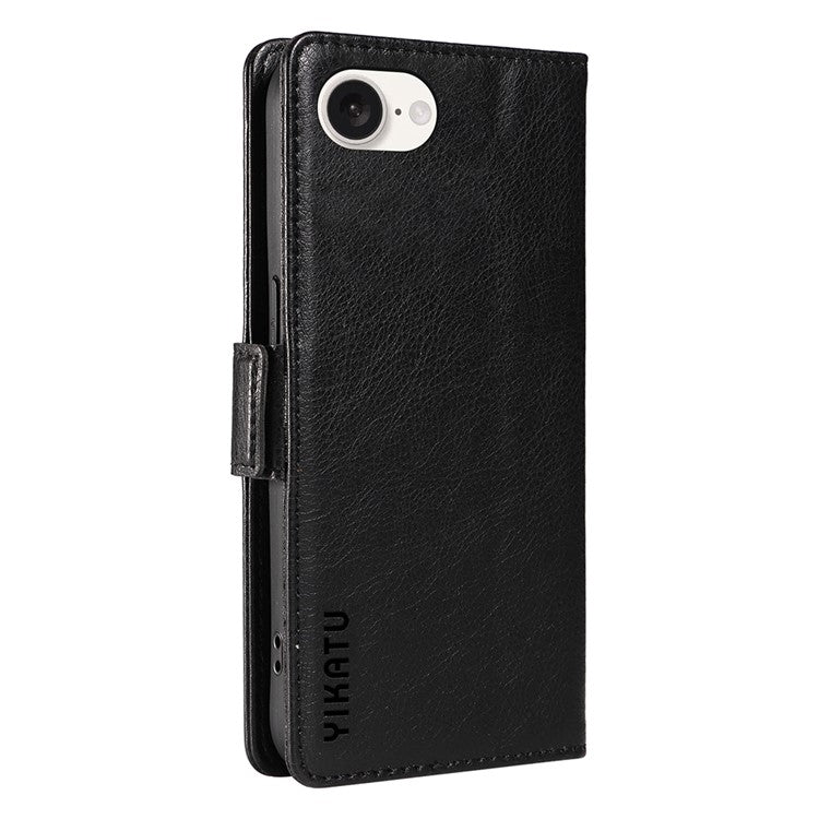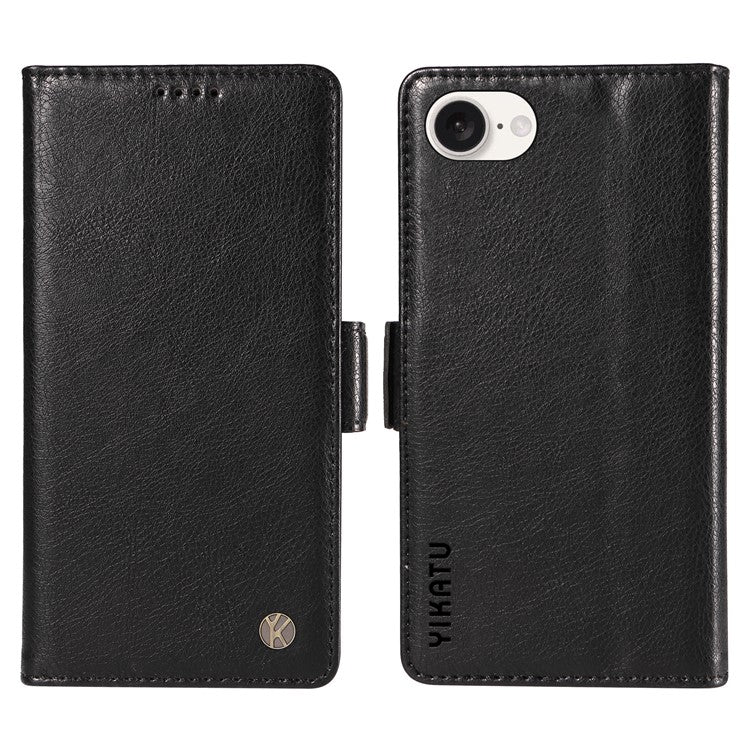 YIKATU YK-007 For iPhone 16e Case PU Leather Litchi Texture Card Holder Folio Magnetic Phone Cover - Black