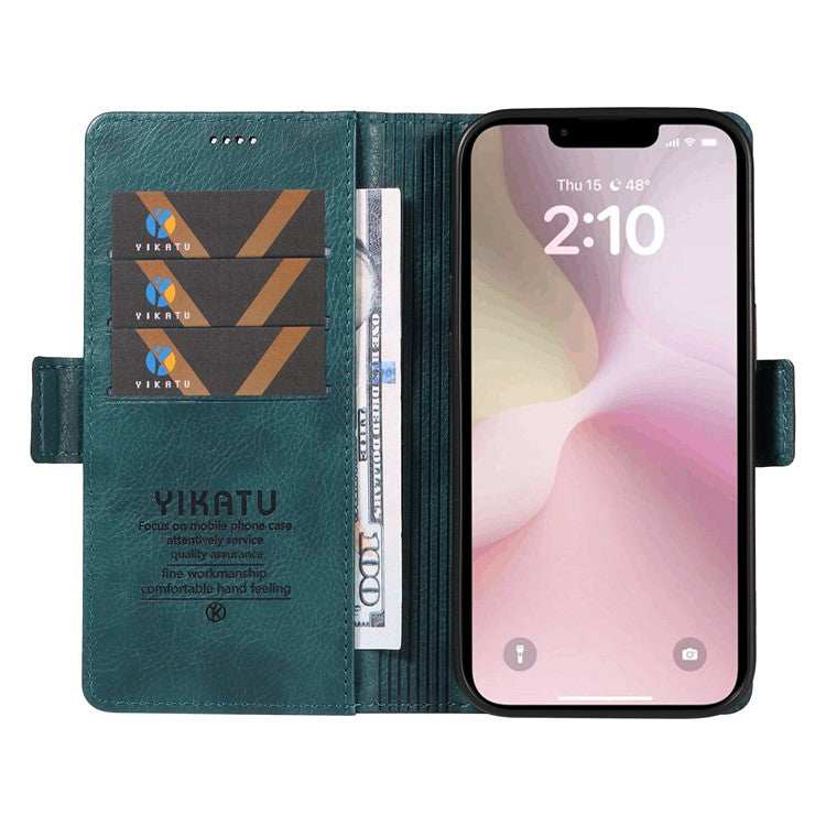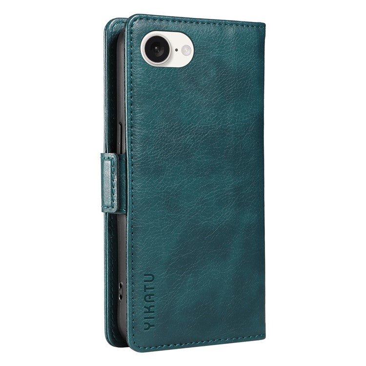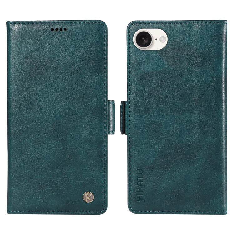 YIKATU YK-007 For iPhone 16e Case PU Leather Litchi Texture Card Holder Folio Magnetic Phone Cover - Blue