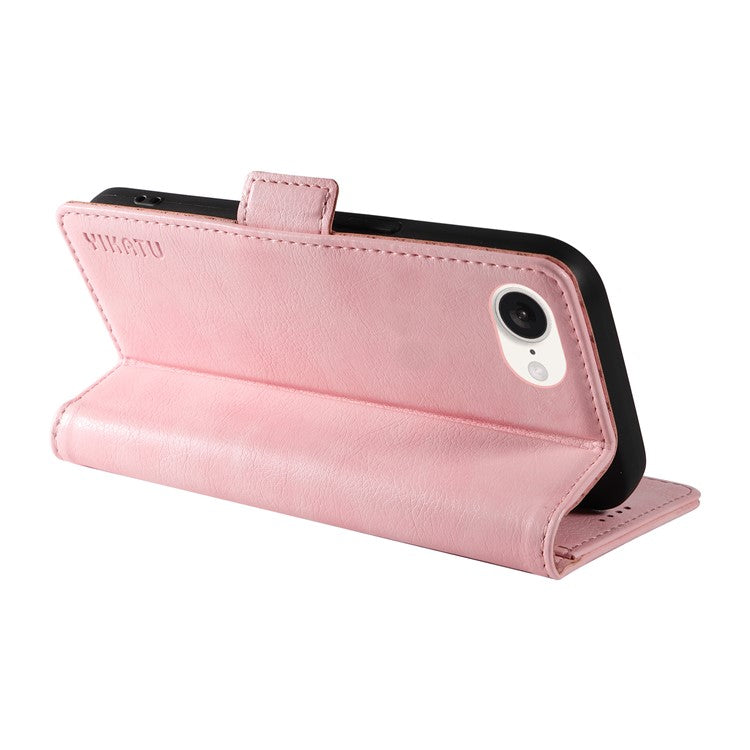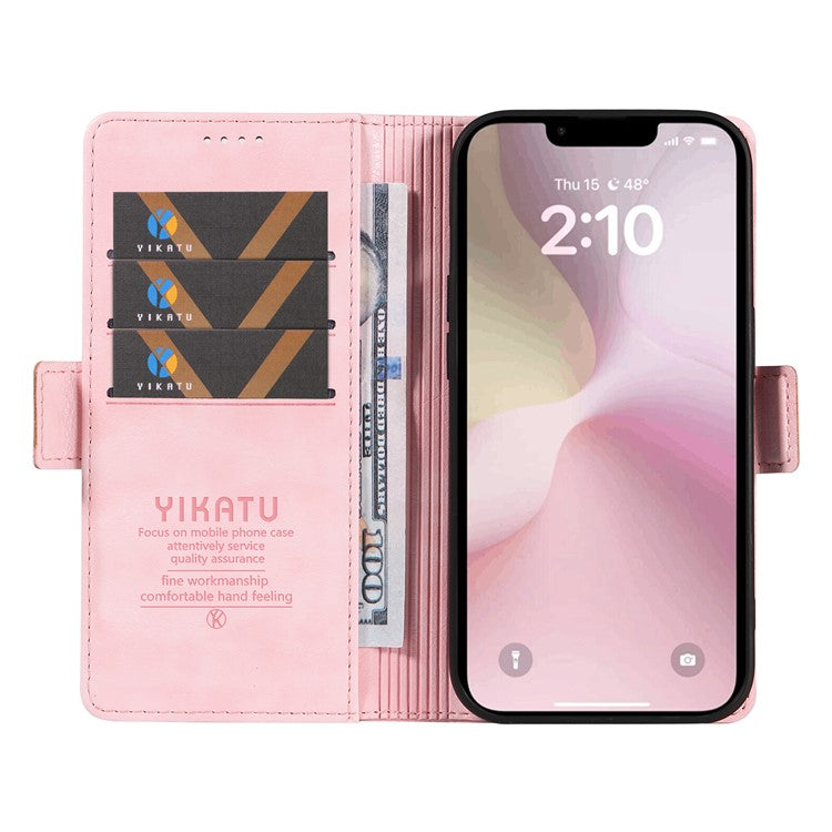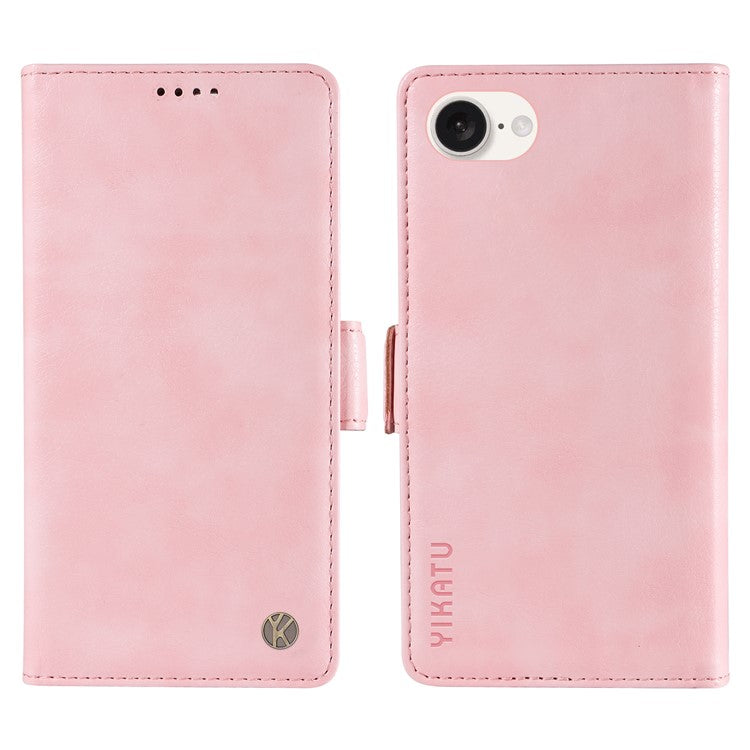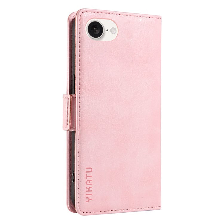 YIKATU YK-007 For iPhone 16e Case PU Leather Litchi Texture Card Holder Folio Magnetic Phone Cover - Pink
