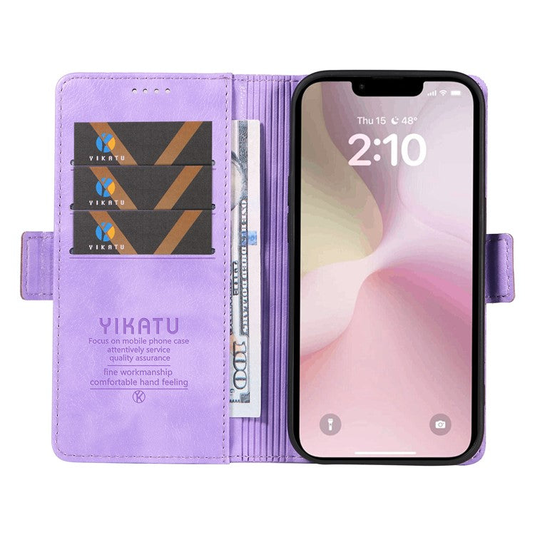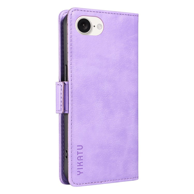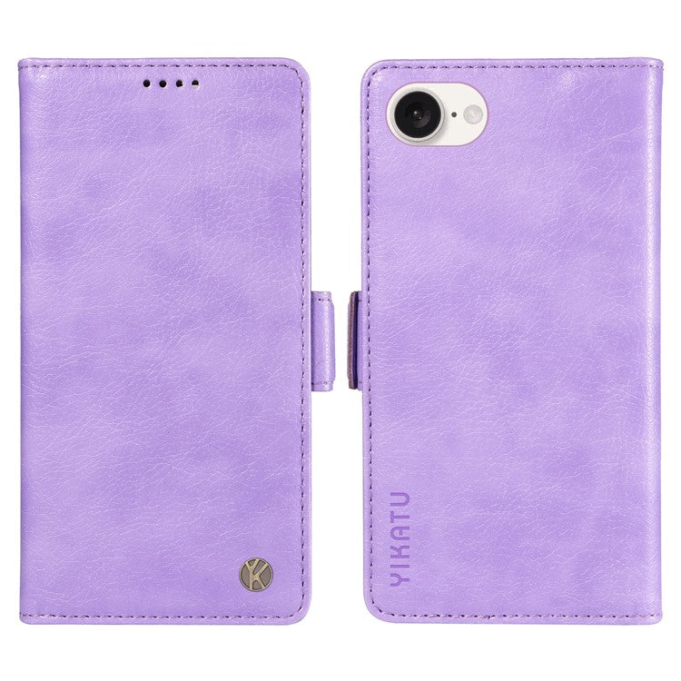 YIKATU YK-007 For iPhone 16e Case PU Leather Litchi Texture Card Holder Folio Magnetic Phone Cover - Purple