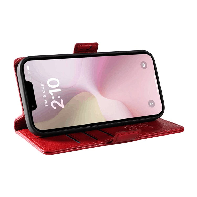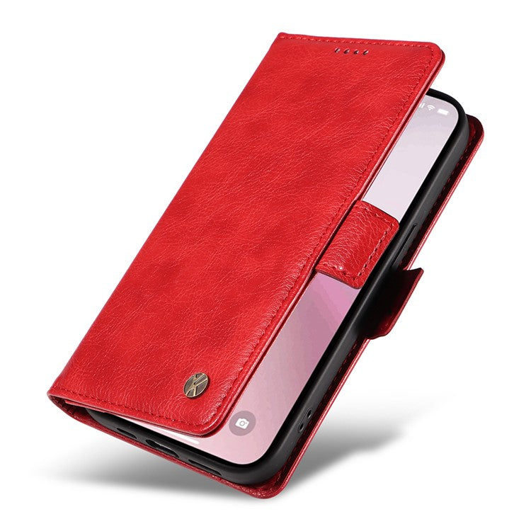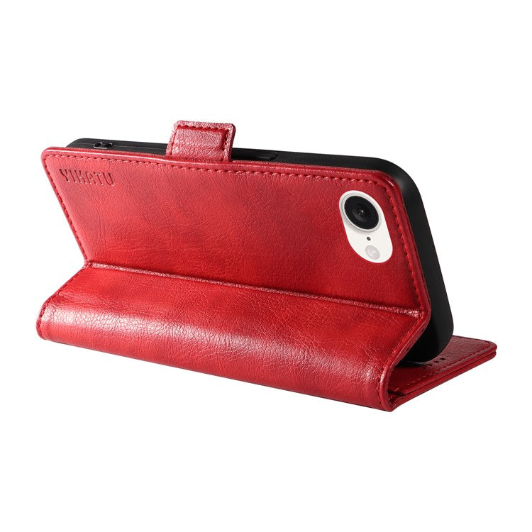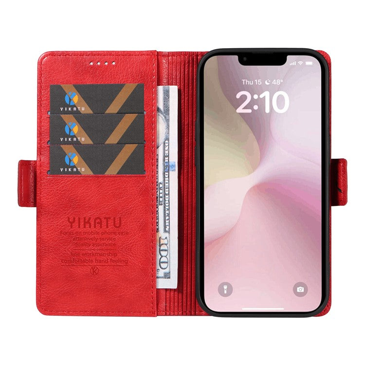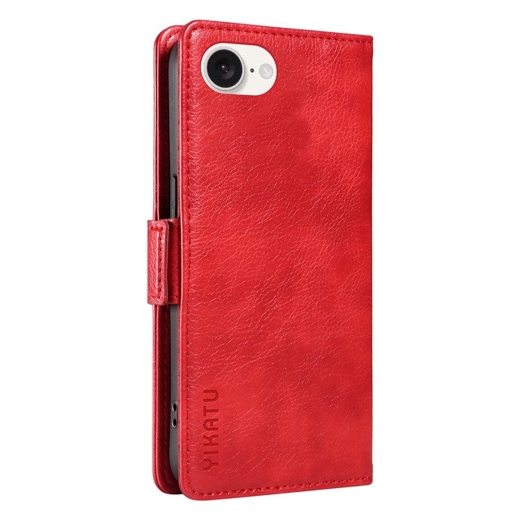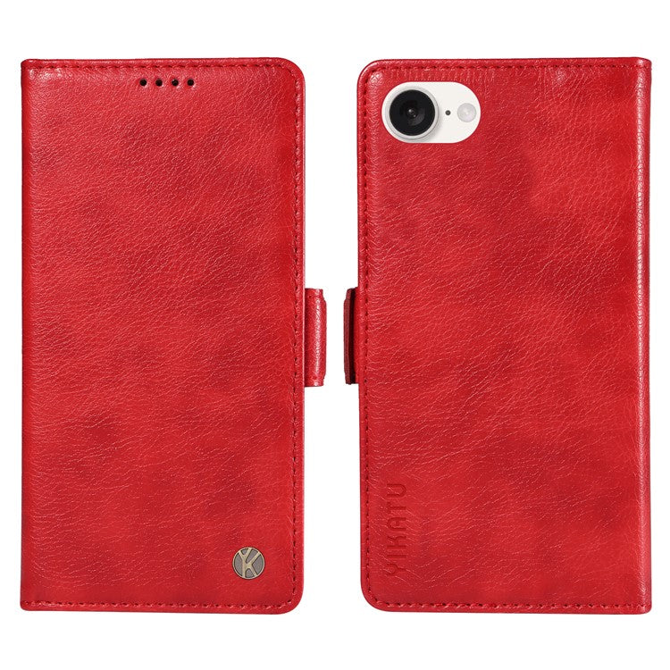 YIKATU YK-007 For iPhone 16e Case PU Leather Litchi Texture Card Holder Folio Magnetic Phone Cover - Red