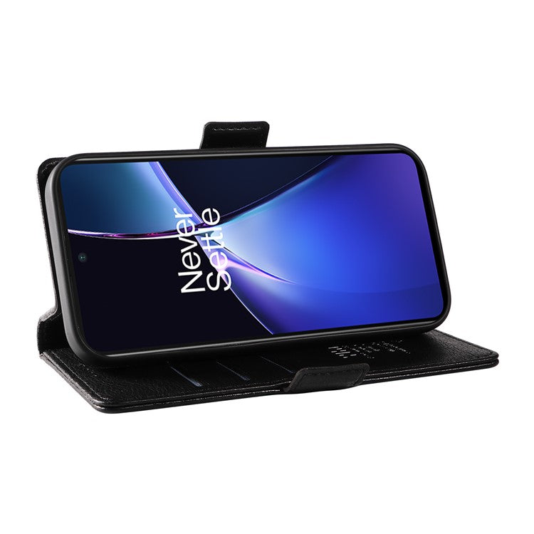 YIKATU YK-007 For OnePlus Nord CE4 Lite 5G / Oppo K12x 5G (China) Wallet Case Litchi Grain Leather Phone Protective Cover - Black
