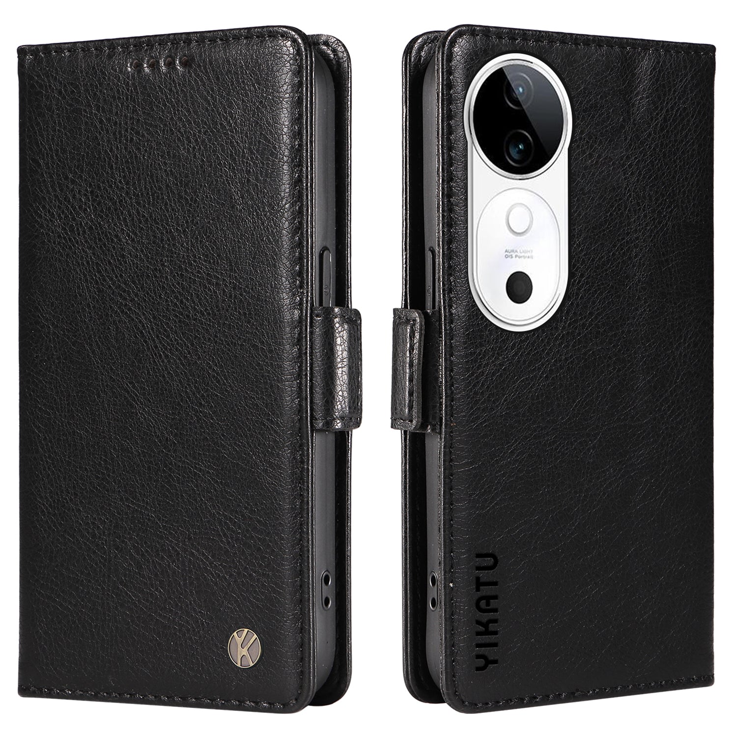 YIKATU YK-007 For vivo V40 5G / S19 5G Case Litchi Texture Leather Flip Phone Cover with Stand - Black