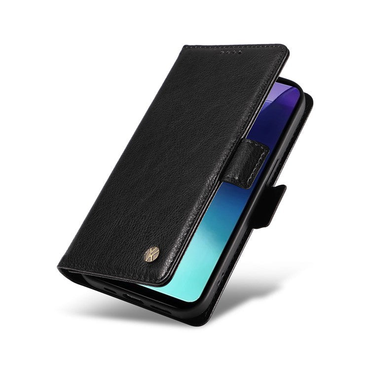 YIKATU YK-007 For Xiaomi Poco C75 4G / Redmi 14R 5G / 14C 4G Case Side Buckle PU Leather Phone Cover Litchi Texture - Black
