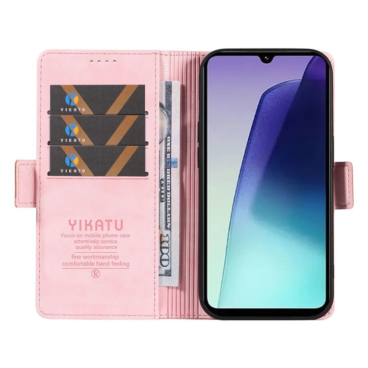 YIKATU YK-007 For Xiaomi Poco C75 4G / Redmi 14R 5G / 14C 4G Case Side Buckle PU Leather Phone Cover Litchi Texture - Pink