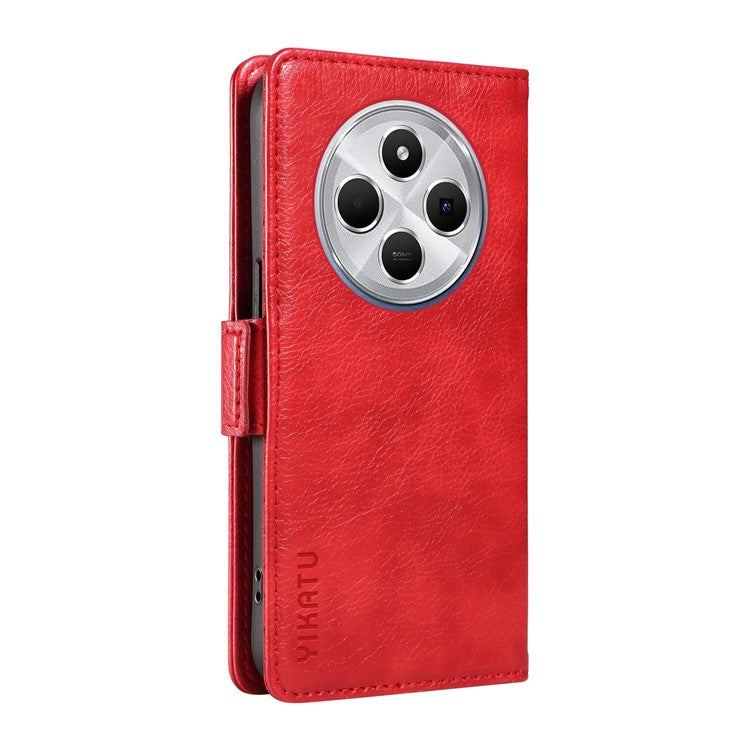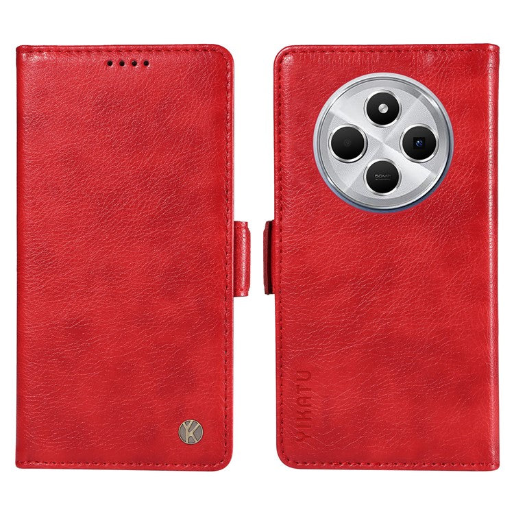 YIKATU YK-007 For Xiaomi Poco C75 4G / Redmi 14R 5G / 14C 4G Case Side Buckle PU Leather Phone Cover Litchi Texture - Red