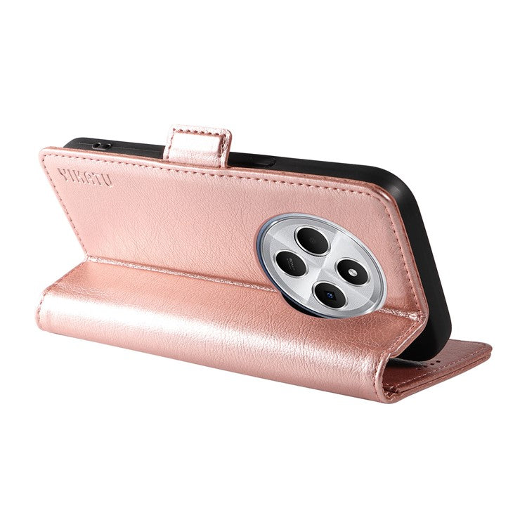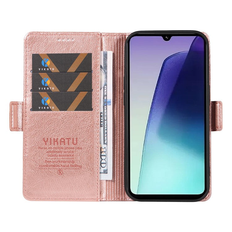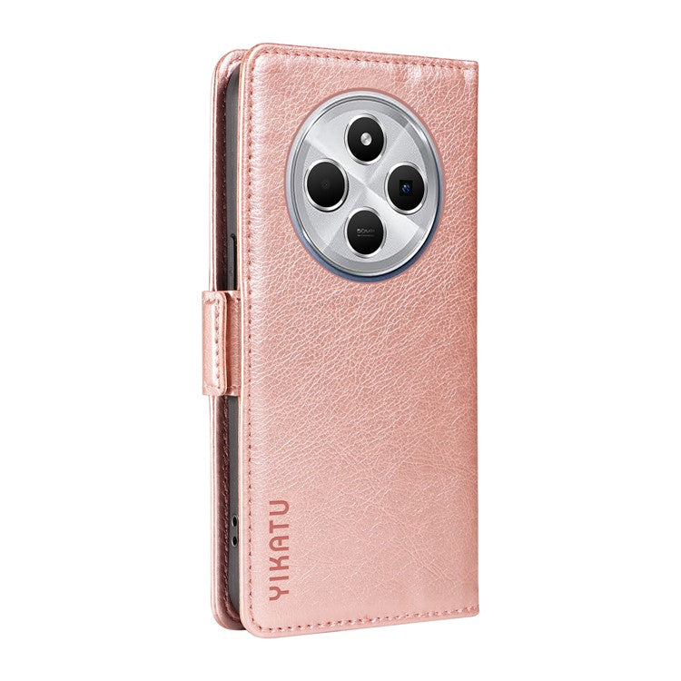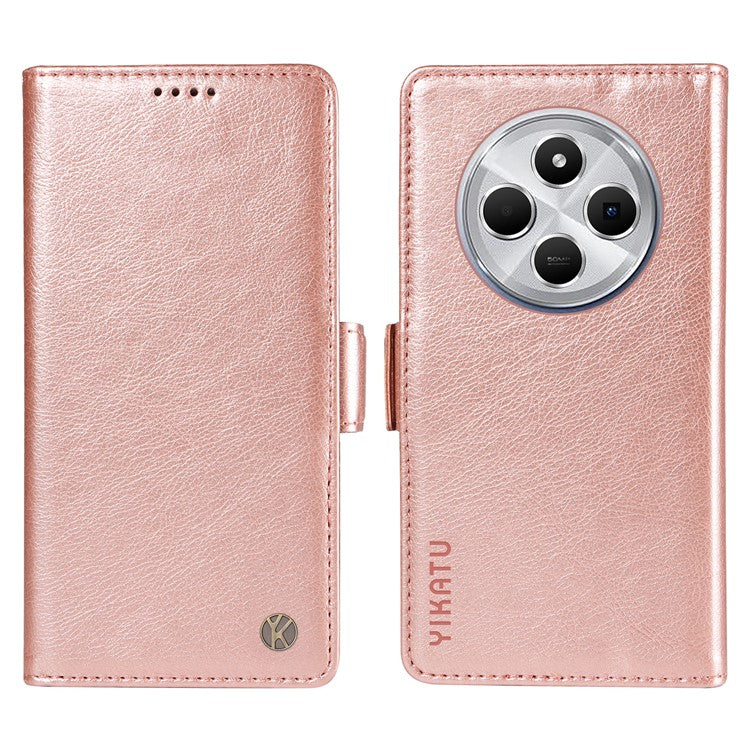 YIKATU YK-007 For Xiaomi Poco C75 4G / Redmi 14R 5G / 14C 4G Case Side Buckle PU Leather Phone Cover Litchi Texture - Rose Gold
