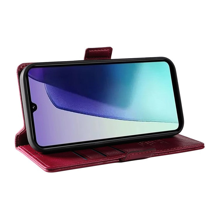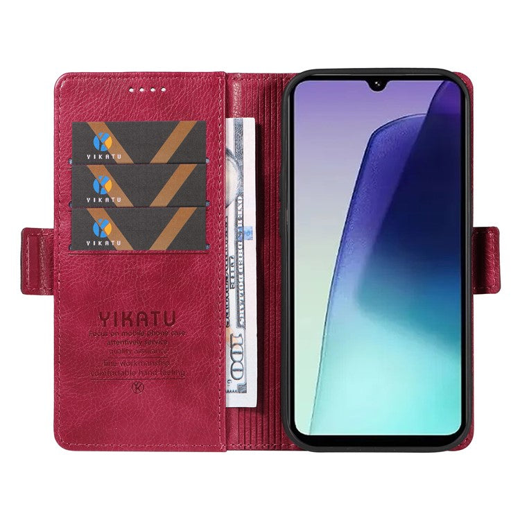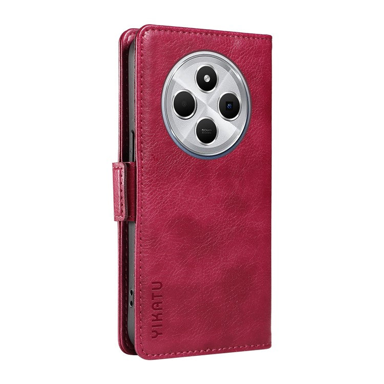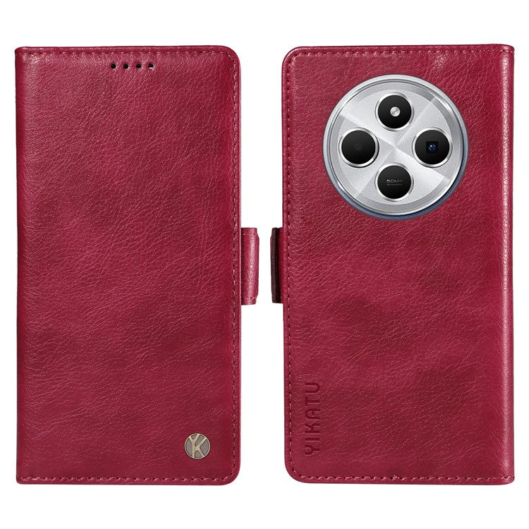 YIKATU YK-007 For Xiaomi Poco C75 4G / Redmi 14R 5G / 14C 4G Case Side Buckle PU Leather Phone Cover Litchi Texture - Wine Red