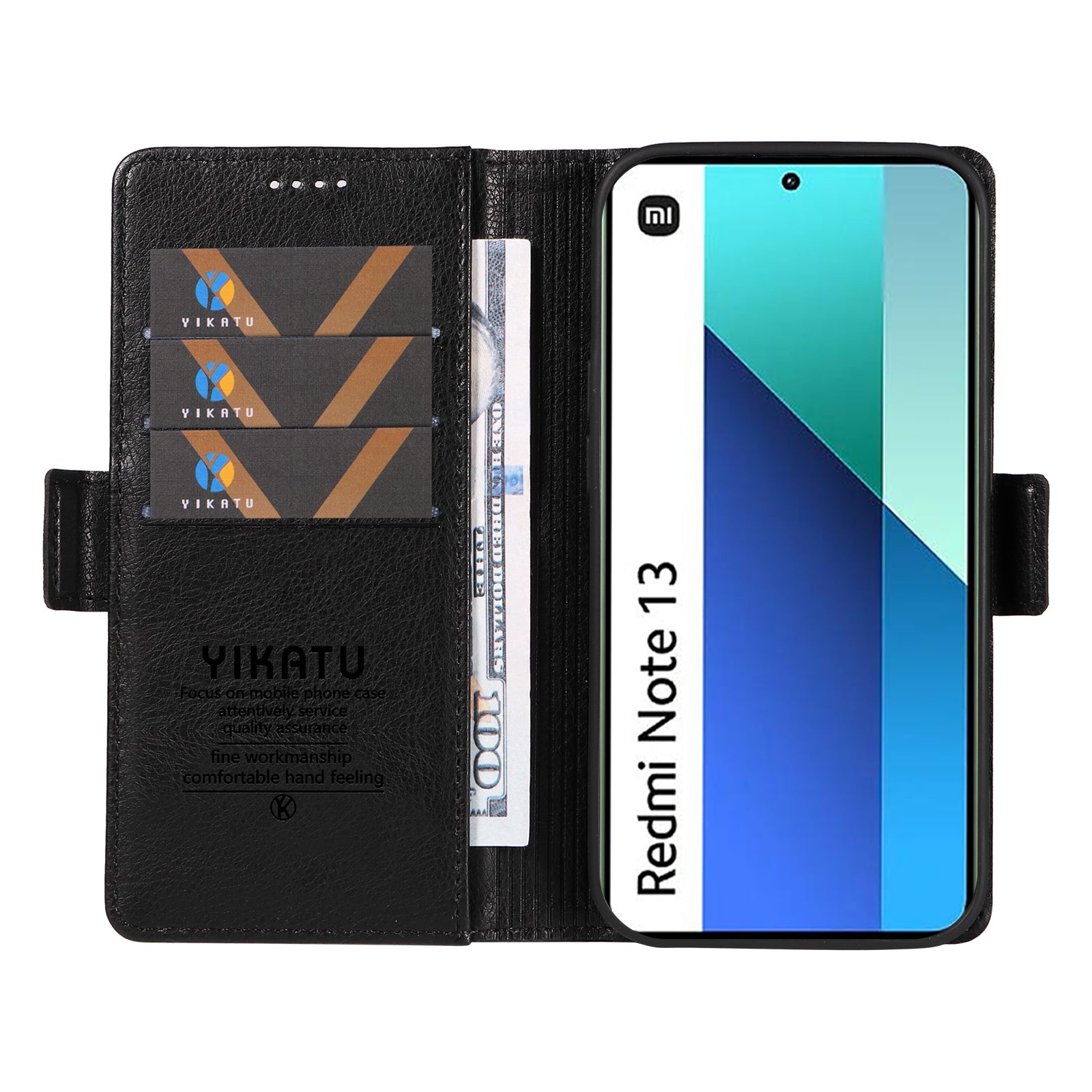YIKATU YK-007 For Xiaomi Redmi Note 13 4G Leather Case Litchi Texture Cover Phone Wallet - Black