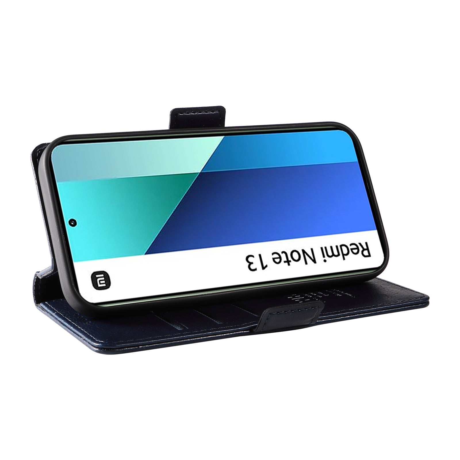 YIKATU YK-007 For Xiaomi Redmi Note 13 4G Leather Case Litchi Texture Cover Phone Wallet - Navy Blue