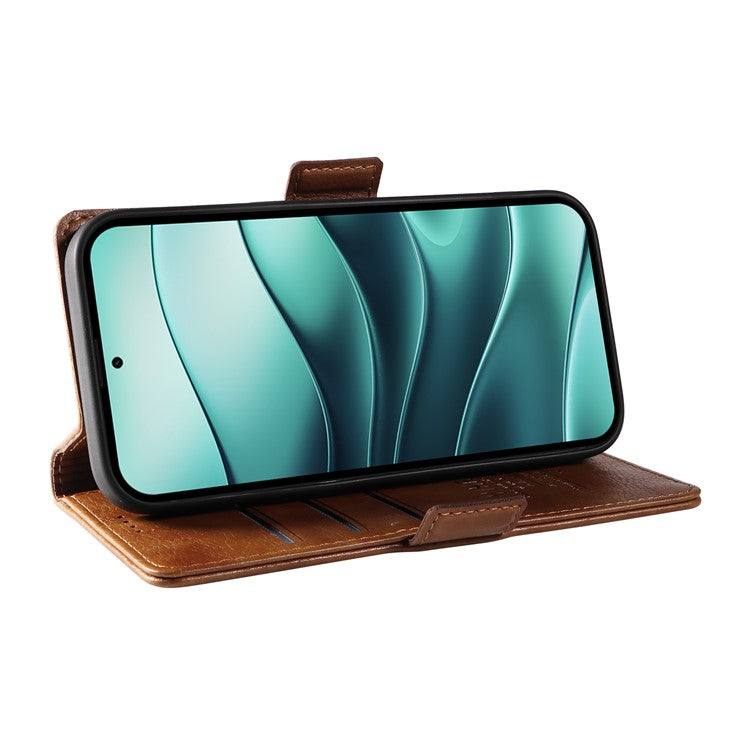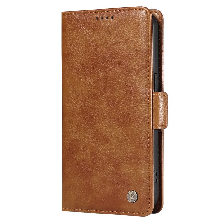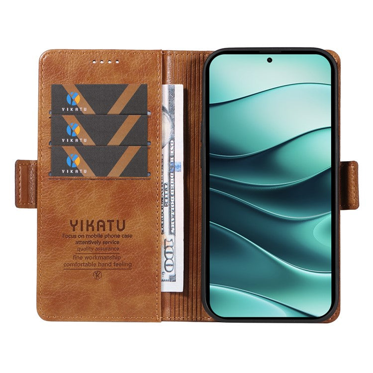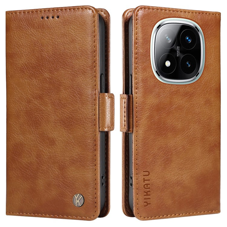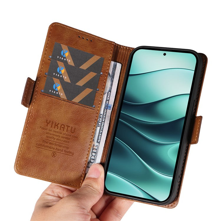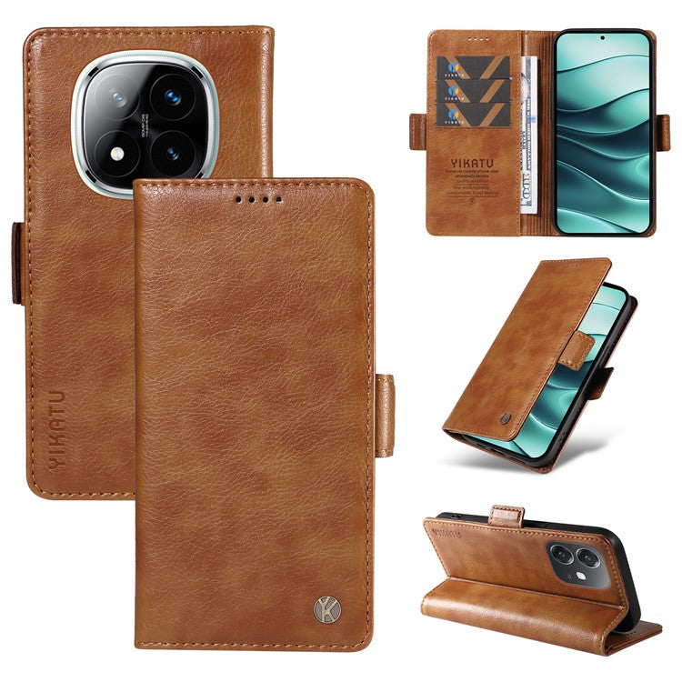 YIKATU YK-007 For Xiaomi Redmi Note 14 5G Case Side Buckle PU Leather Phone Cover Litchi Texture - Brown
