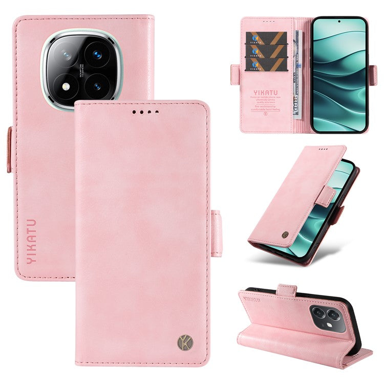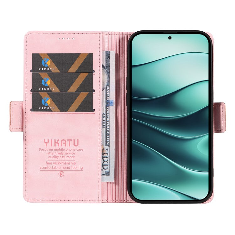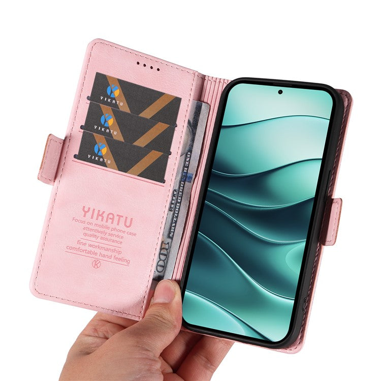 YIKATU YK-007 For Xiaomi Redmi Note 14 5G Case Side Buckle PU Leather Phone Cover Litchi Texture - Pink