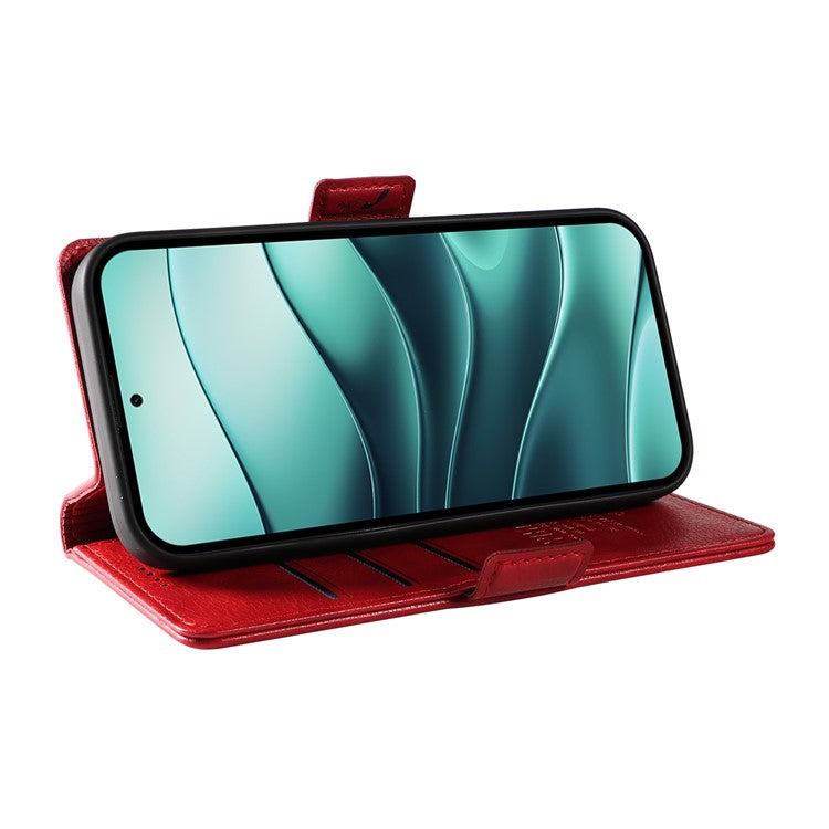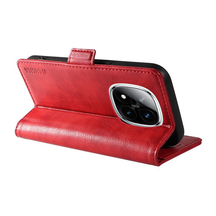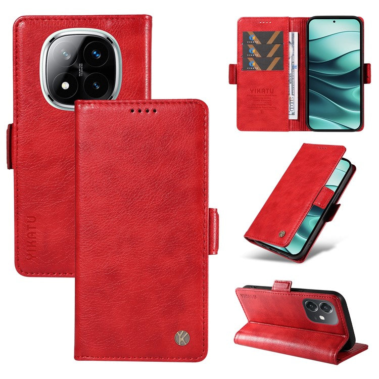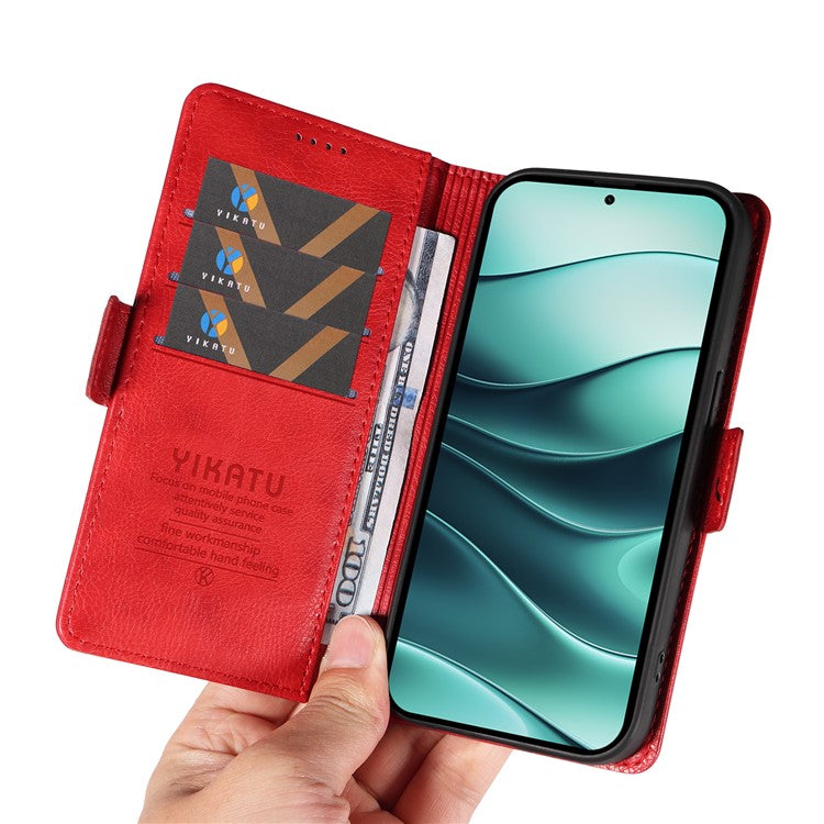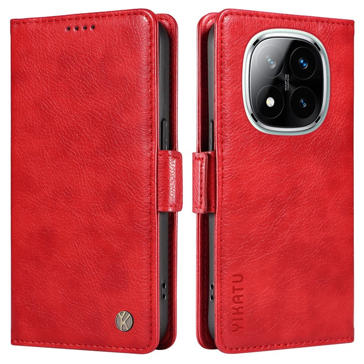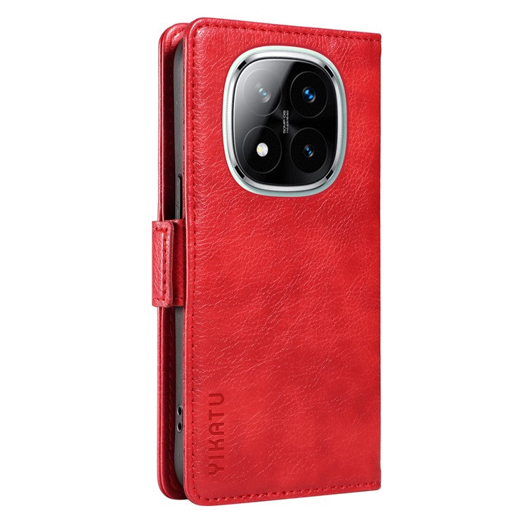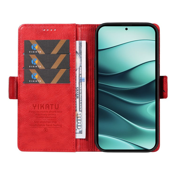 YIKATU YK-007 For Xiaomi Redmi Note 14 5G Case Side Buckle PU Leather Phone Cover Litchi Texture - Red