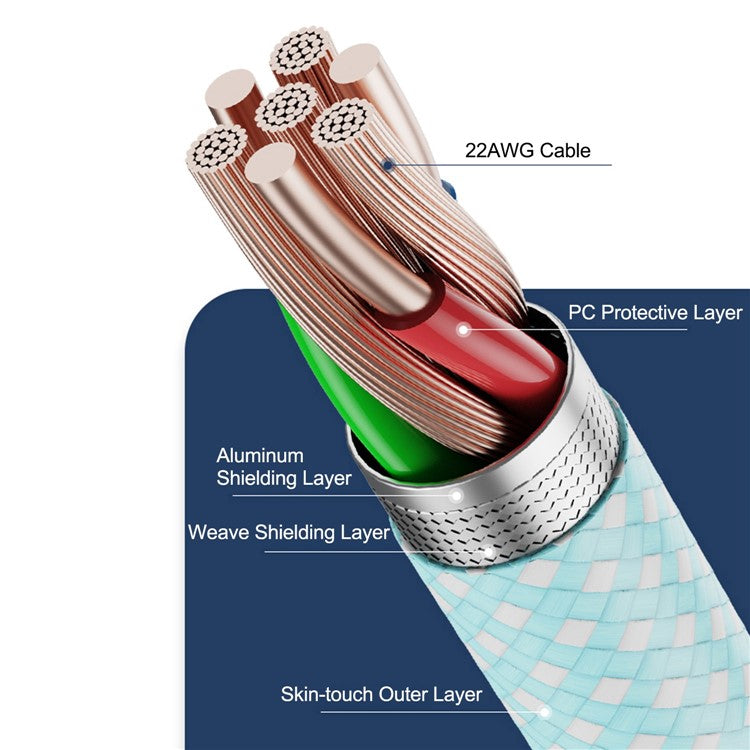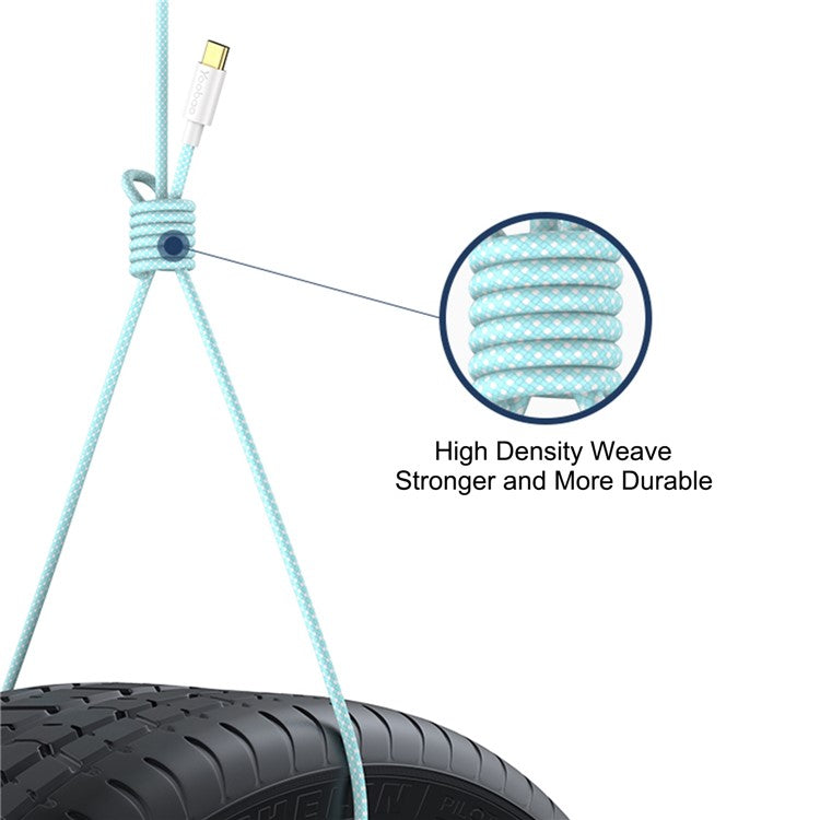YOOBAO V3 for iPhone 15 Series 2m USB to Type-C Charging Line Nylon Braided 66W Fast Charging Data Transmission Cable - Blue