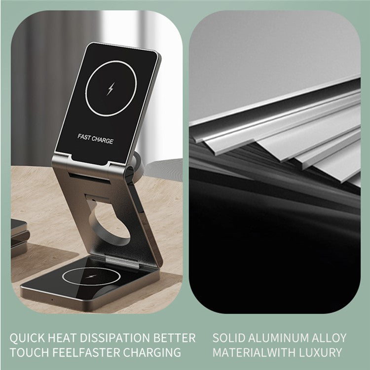 YT10 3-in-1 Foldable Phone Watch Earphone Aluminum Alloy 15W Magnetic Wireless Charger