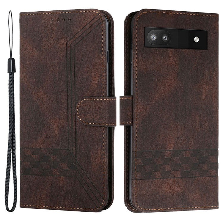 YX0010 Series for Google Pixel 6a Cell Phone Wallet Cover Imprinted Pattern Stand Case PU Leather Shell - Coffee