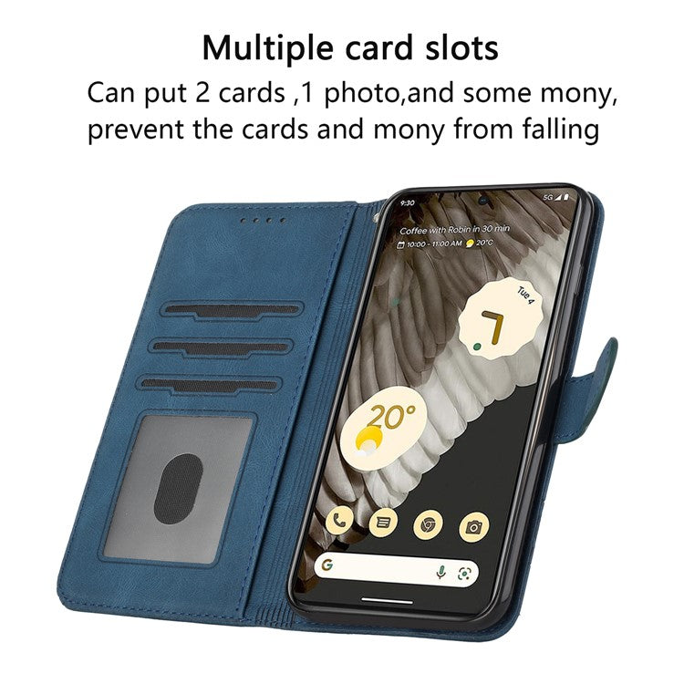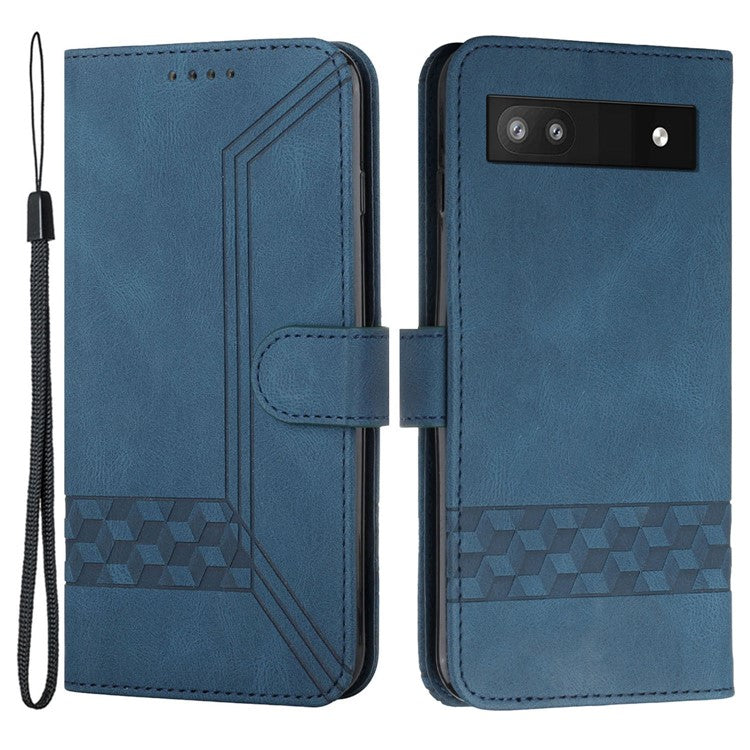 YX0010 Series for Google Pixel 6a Cell Phone Wallet Cover Imprinted Pattern Stand Case PU Leather Shell - Sapphire