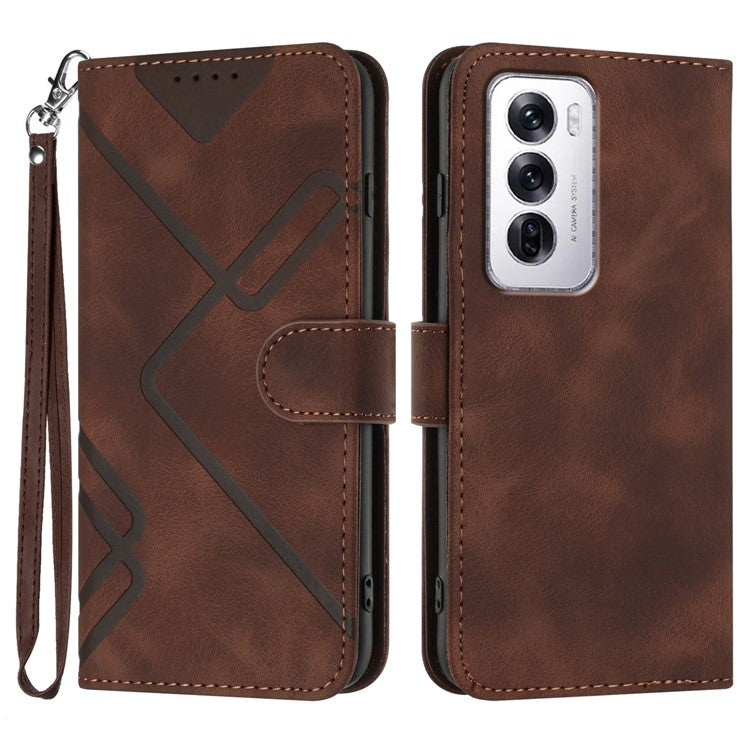 YX0040 For Oppo Reno12 5G (Global) / Reno12 Pro 5G (Global) Leather Case Geometry Phone Cover - Coffee