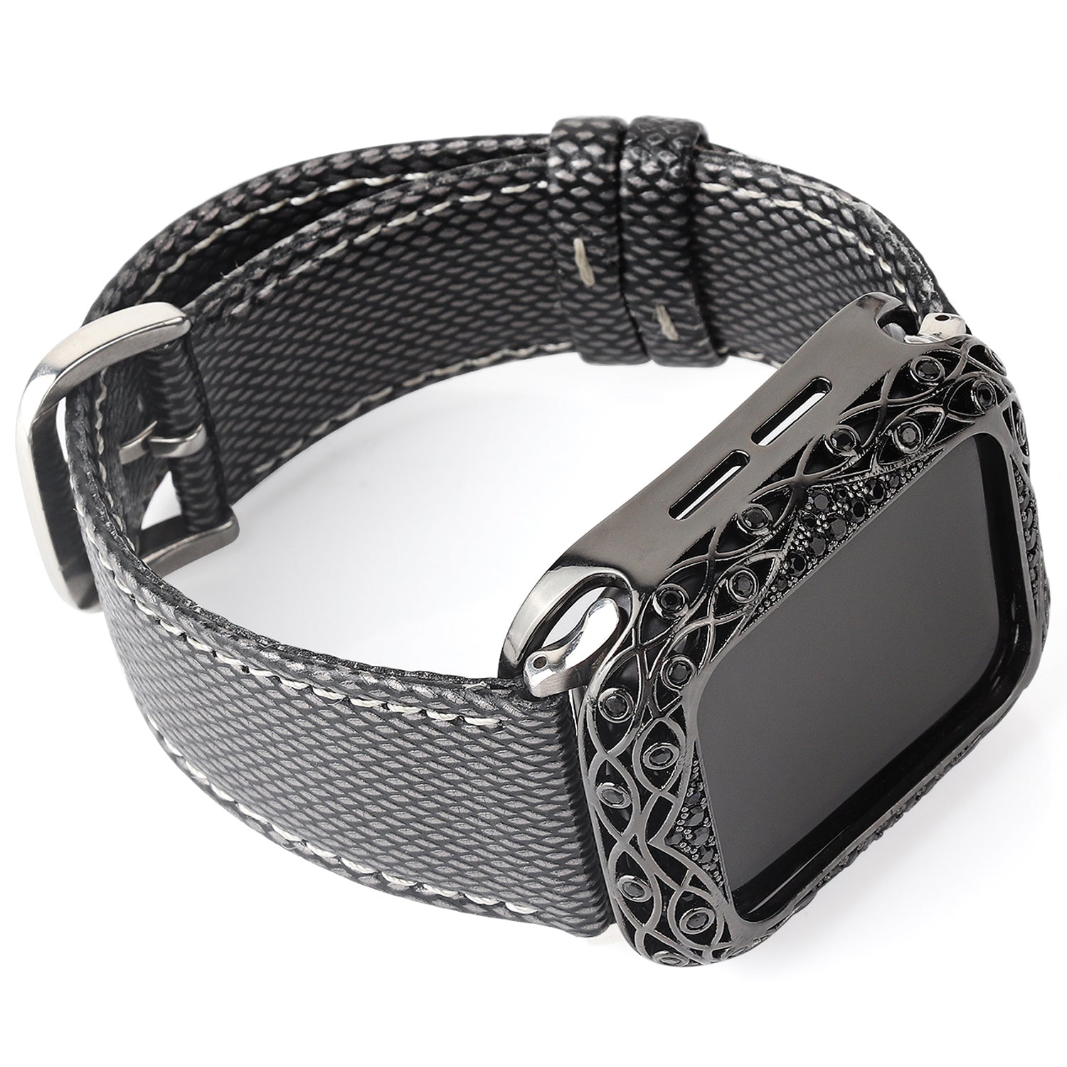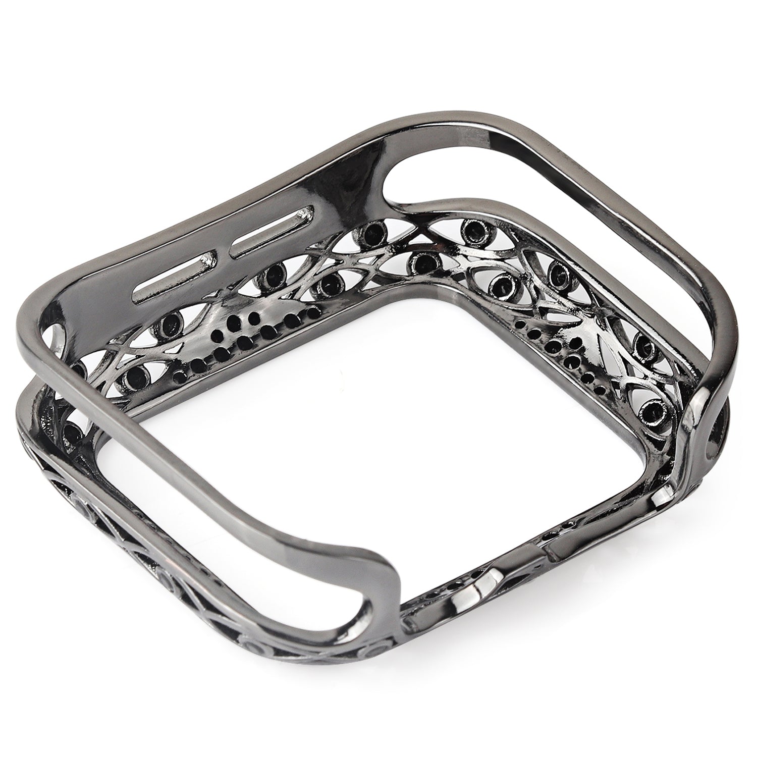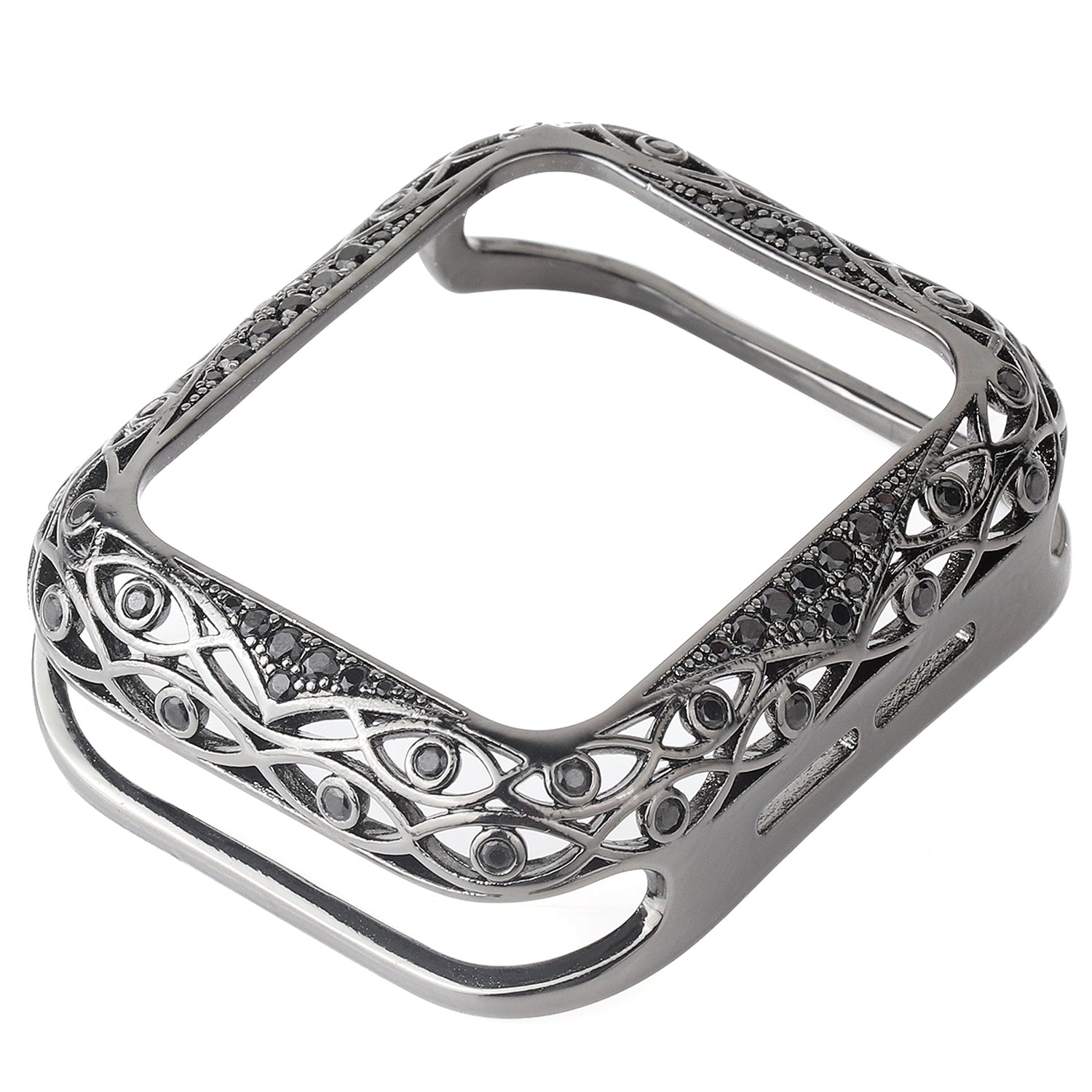 Zircon Decor Hollow-out Copper Protective Watch Case Shell for Apple Watch Series 4 / 5 / 6 44mm / SE 44mm / SE (2022) 44mm - Black