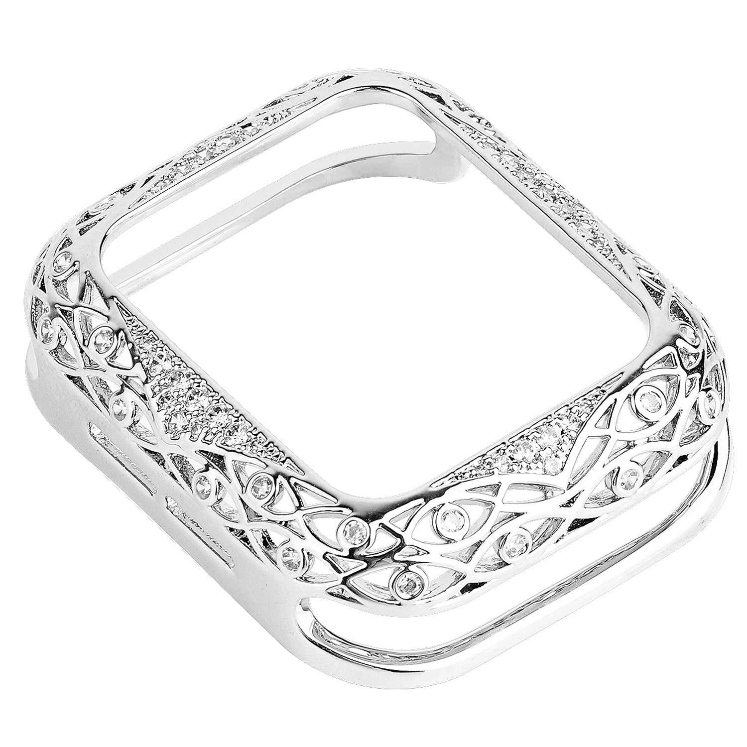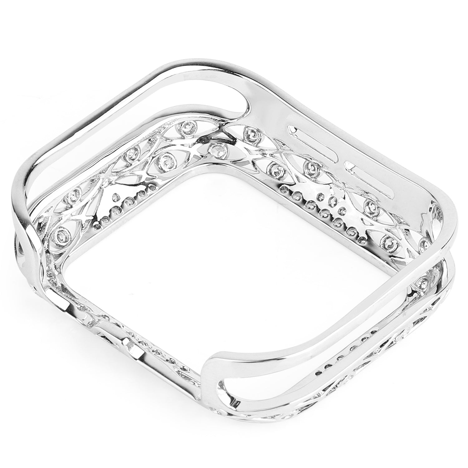 Zircon Decor Hollow-out Copper Protective Watch Case Shell for Apple Watch Series 4 / 5 / 6 44mm / SE 44mm / SE (2022) 44mm - Silver