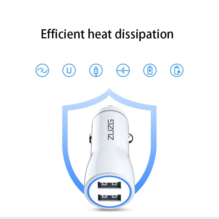 ZUZG ZC-C10S Dual USB PC+ABS Car Charger 2.4A Phone Charging Adapter - White